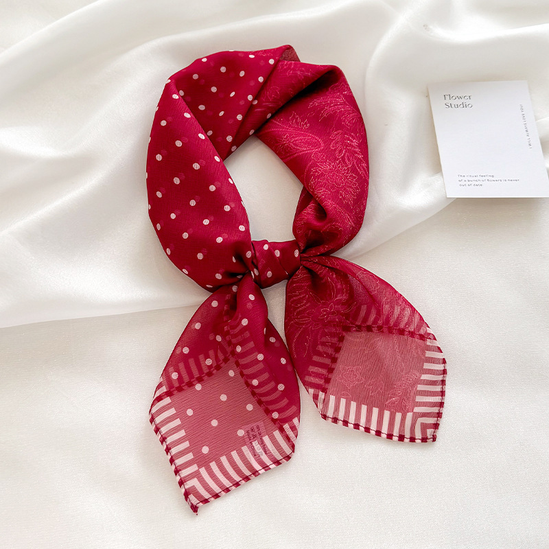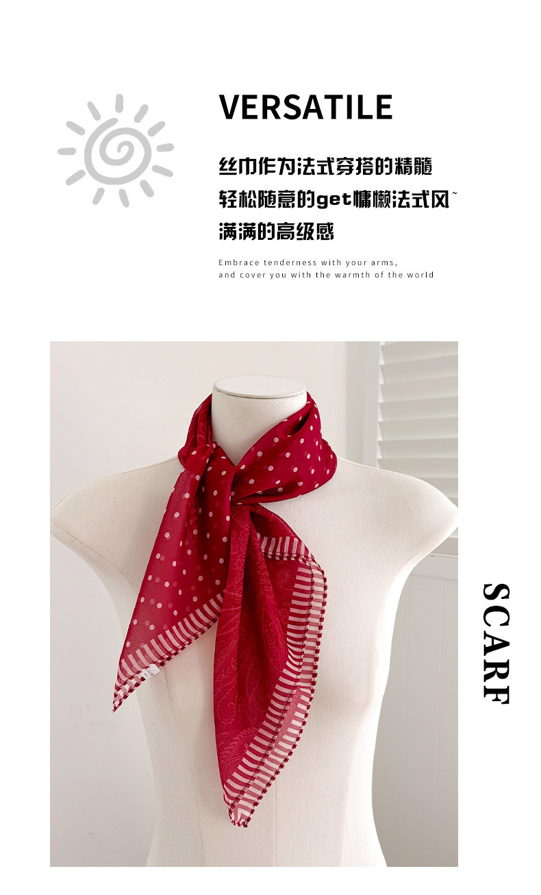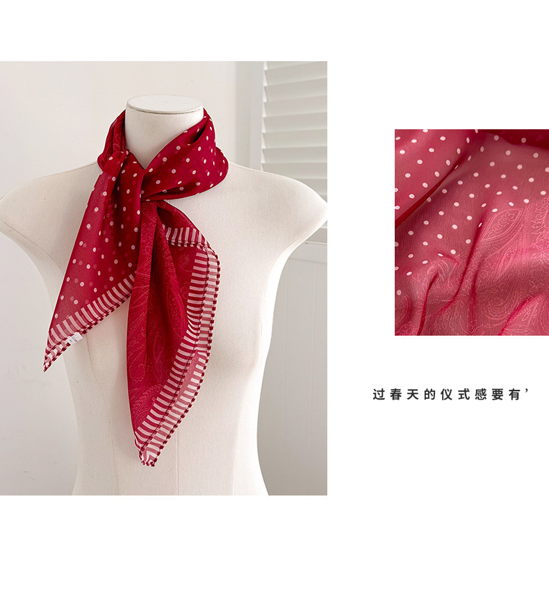 빨간색 폴카 도트 거즈 스카프, 작은 사각형 스카프, 봄 여름 장식 자외선 차단 프린트, 고급 새 스타일의 실크 스카프