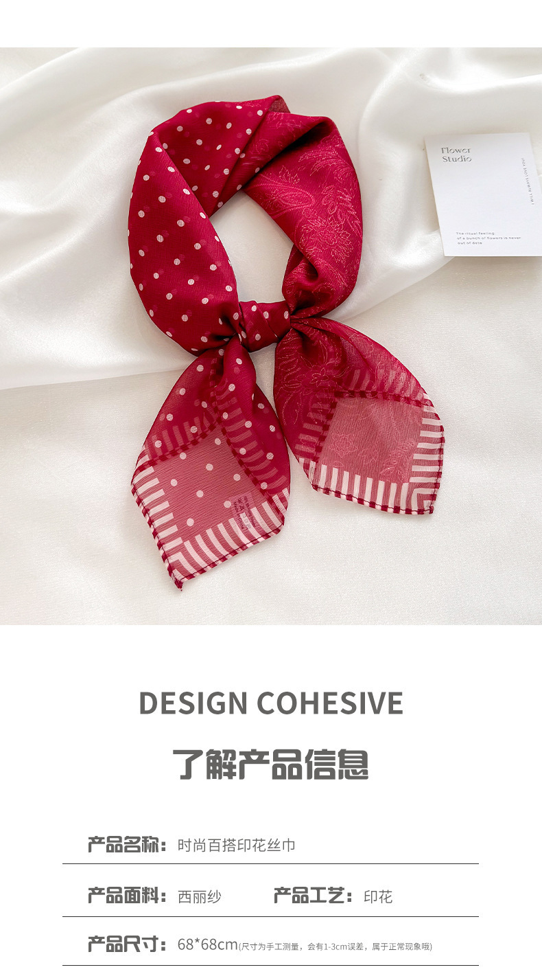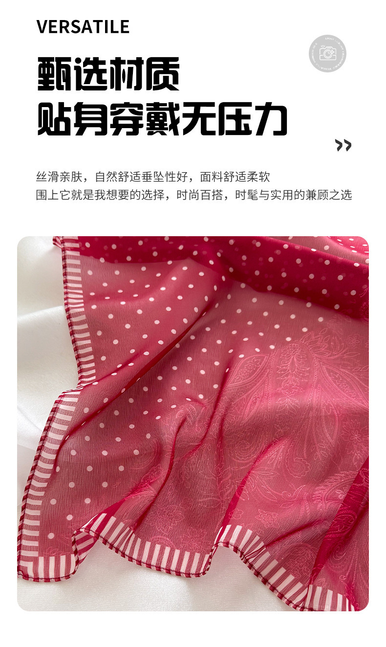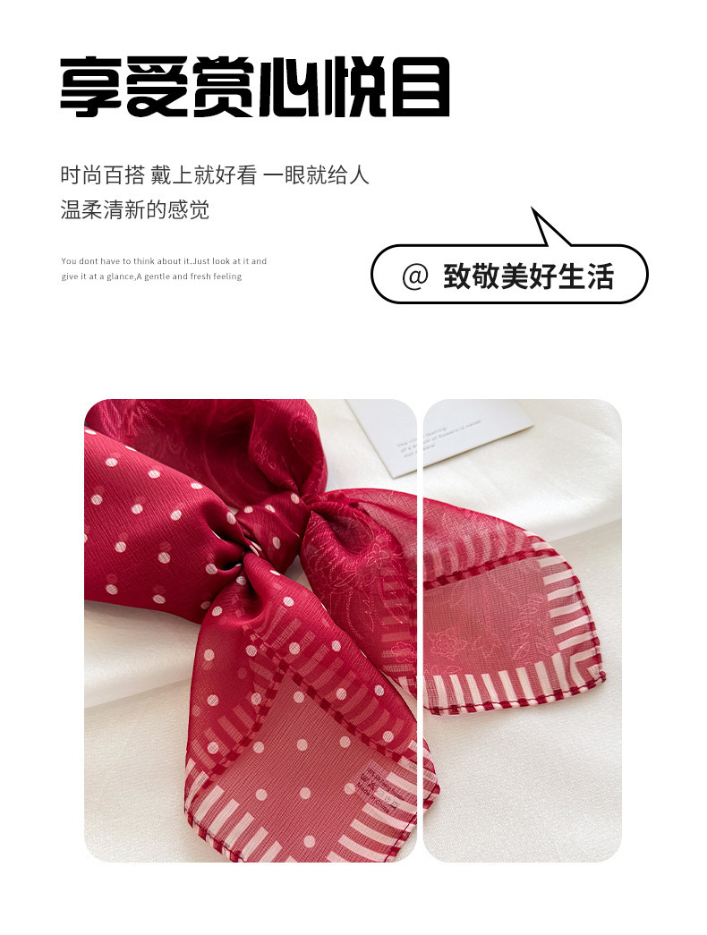 빨간색 폴카 도트 거즈 스카프, 작은 사각형 스카프, 봄 여름 장식 자외선 차단 프린트, 고급 새 스타일의 실크 스카프스토어 가기