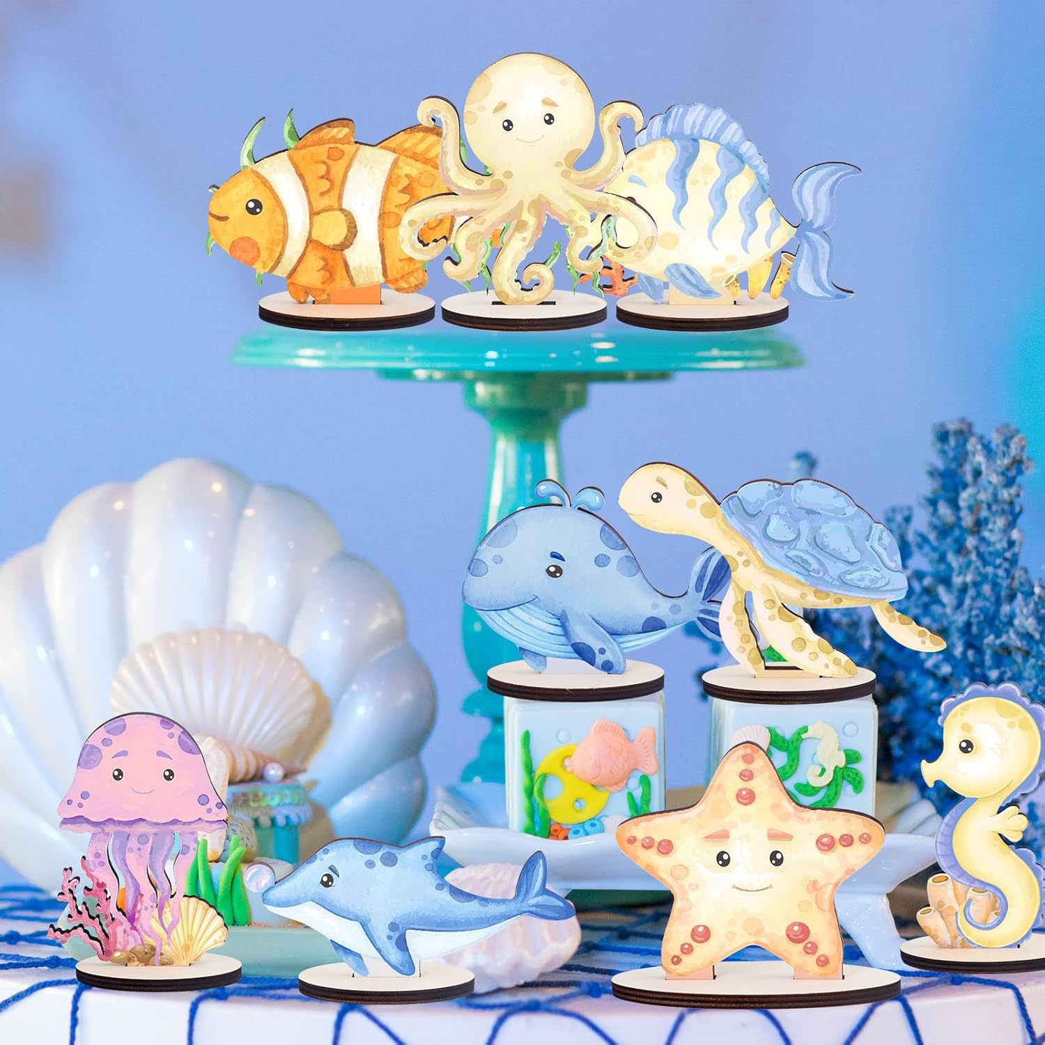 새로운 바다 나무 센터 피스 장식 귀여운 거북이 고래 테이블 로고 해저 생물 베이비 샤워 생일 장식스토어 가기