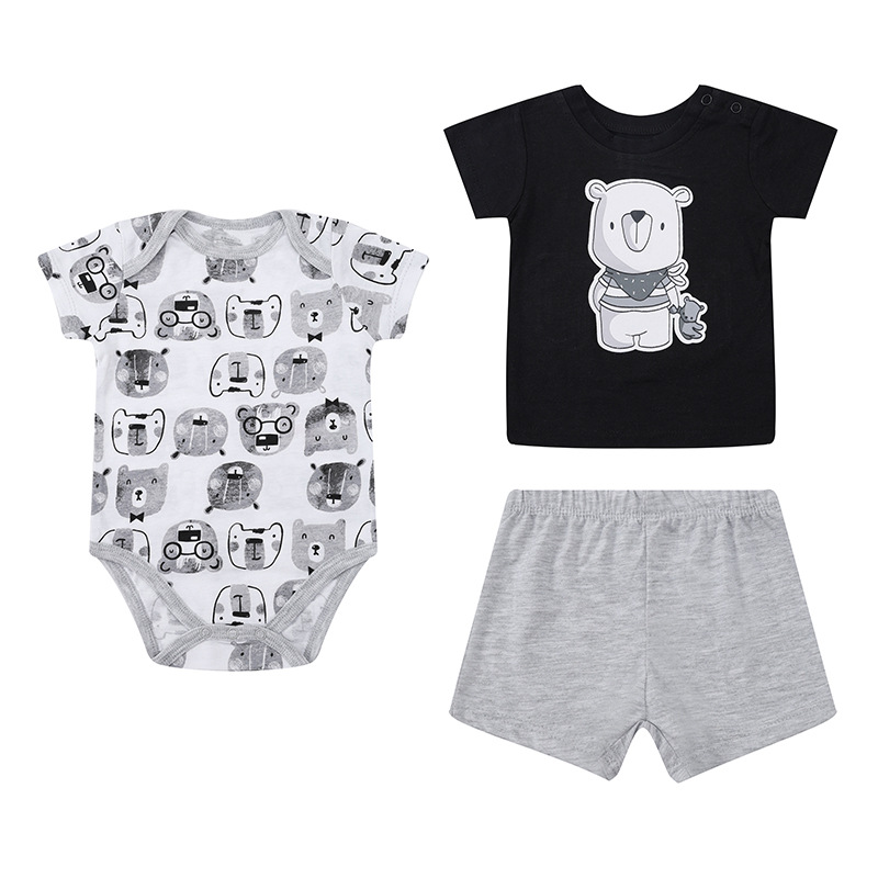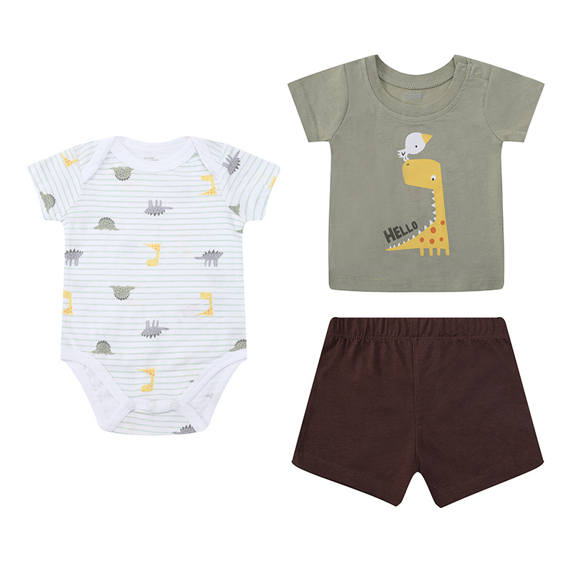 국경 간 스팟 베이비 3 피스 세트 순면 반팔/티셔츠 소녀 소년 여름 삼각형 하렘 정장 도매