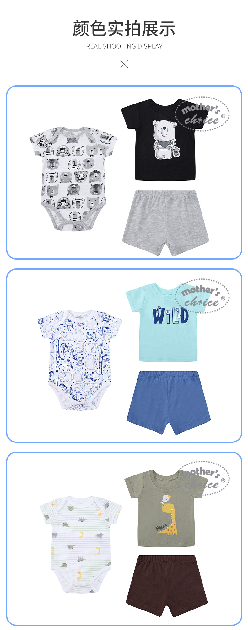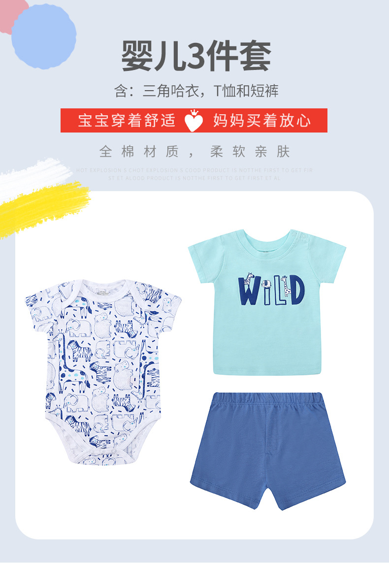 국경 간 스팟 베이비 3 피스 세트 순면 반팔/티셔츠 소녀 소년 여름 삼각형 하렘 정장 도매스토어 가기