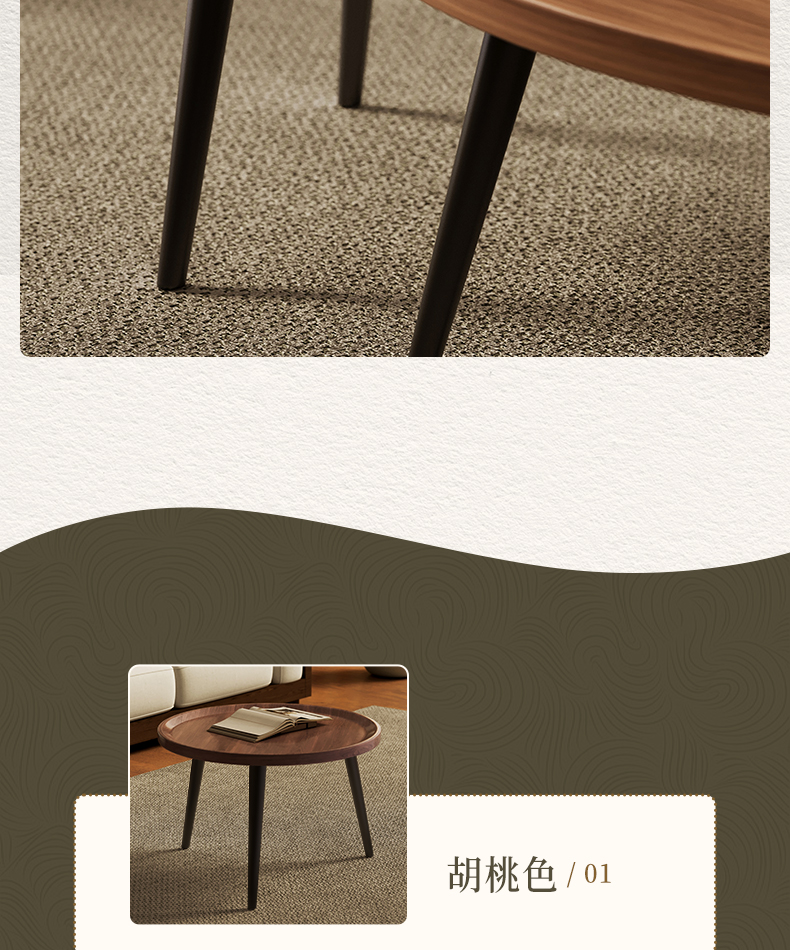 • [개별 원형테이블-원목다리] 월넛색상 50*50*48