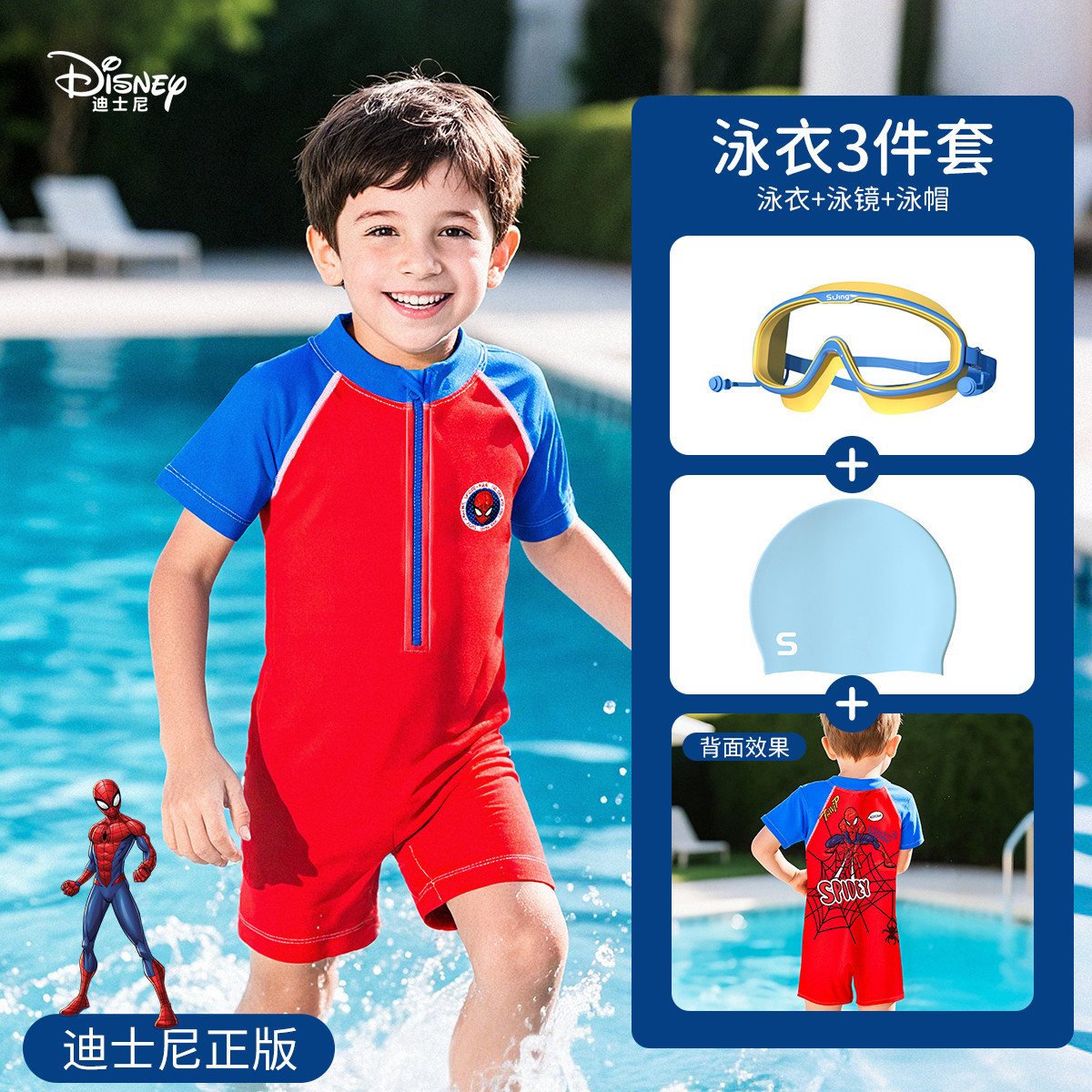 • [디즈니 정품] 스파이더맨 원피스 수영복 + 수영 고글 + 수영 모자
