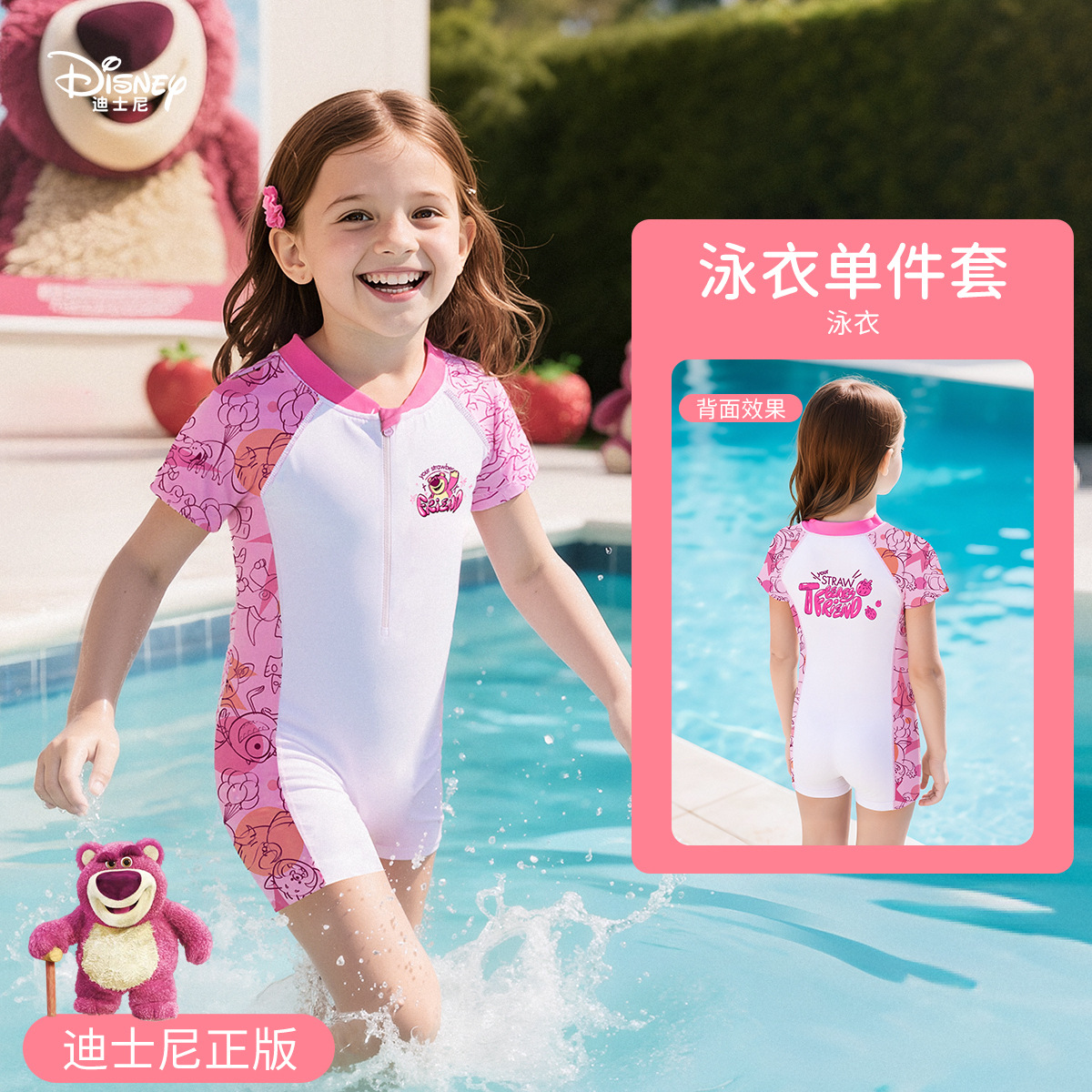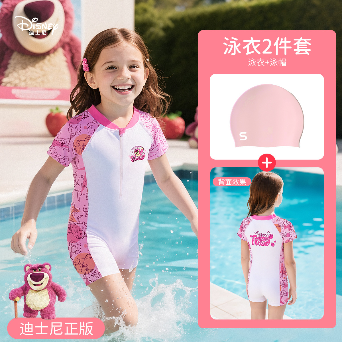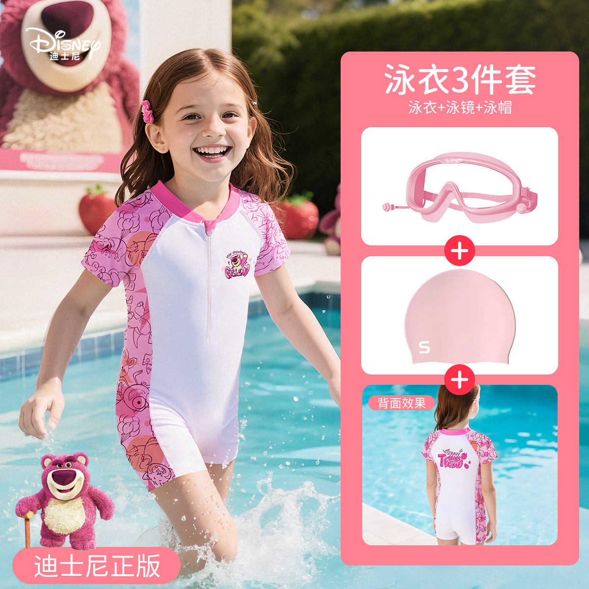 • [디즈니 정품] 딸기곰 원피스 수영복 + 수영고글 + 수영모