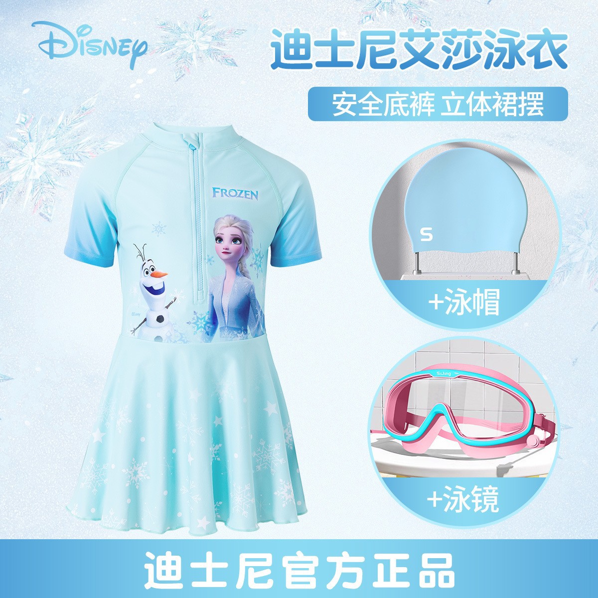 • [디즈니 정품] 엘사 공주 원피스 수영복 + 수영 고글 + 수영복