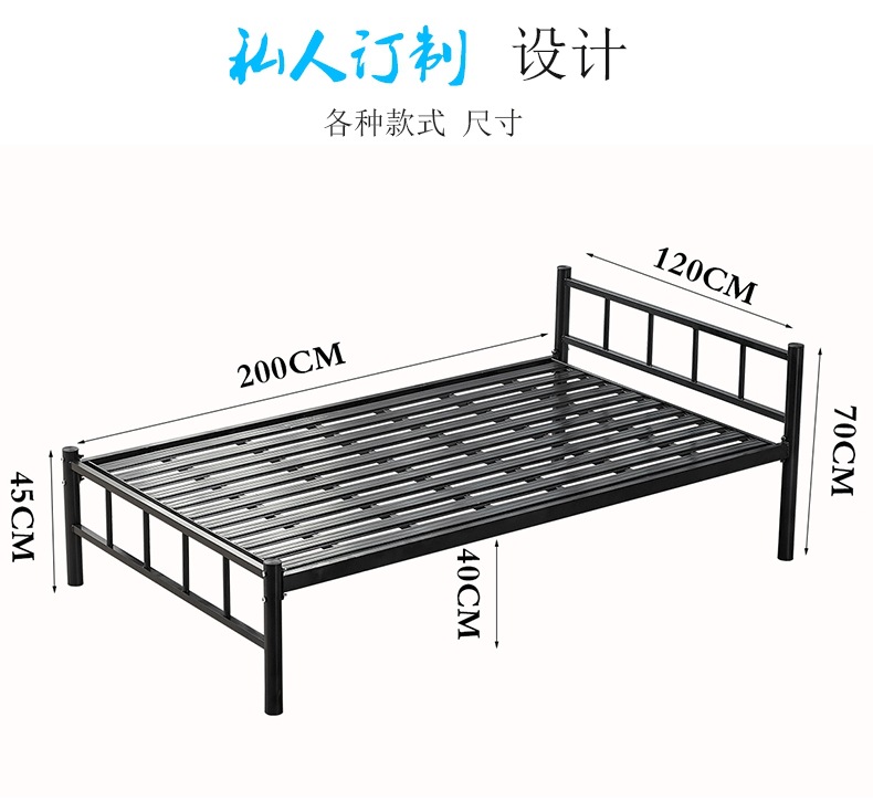 단층 철제 침대 학생 기숙사 1.35m 철제 더블 침대 직원 임대 주택 싱글 두꺼워지고 높이 g&
