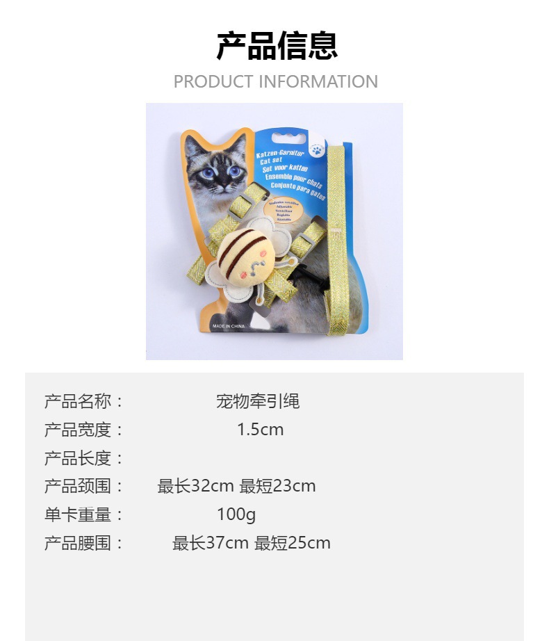 Xiaohongshu 인터넷 연예인 같은 스타일 작은 꿀벌 고양이 견인 로프 I 자형 조절 가능한 하네스 고양이 로프 도매