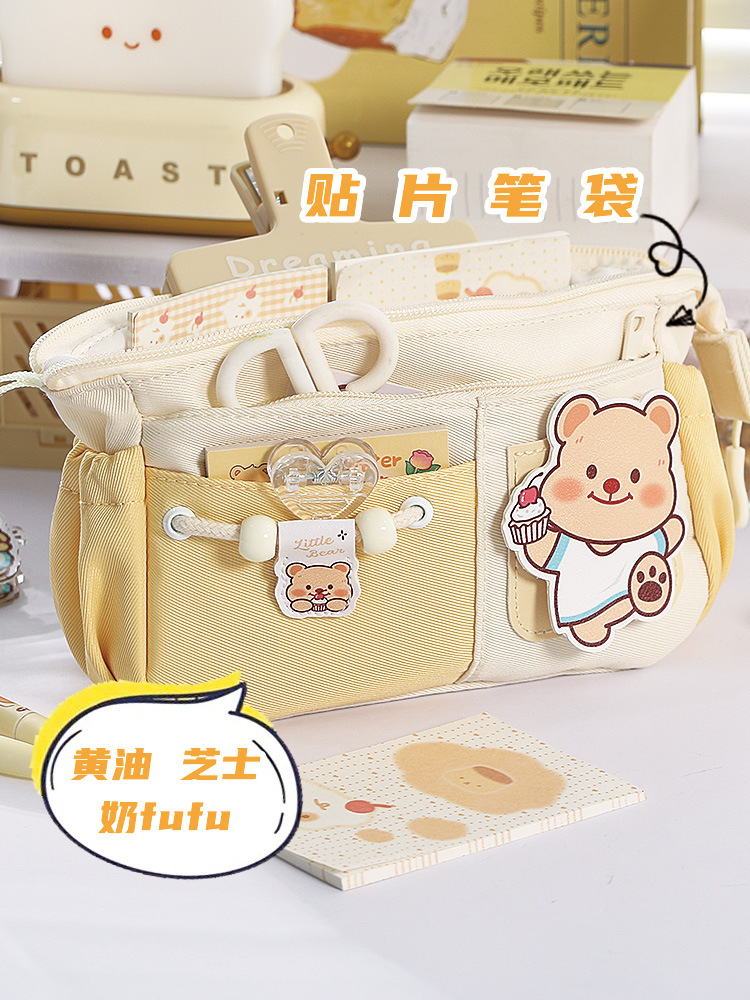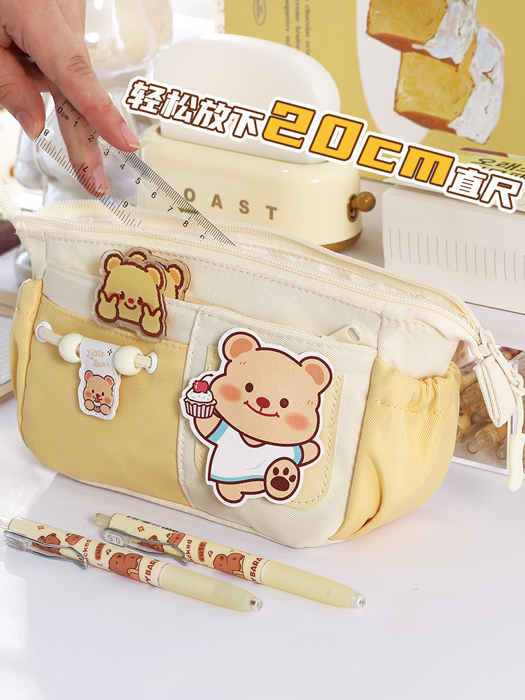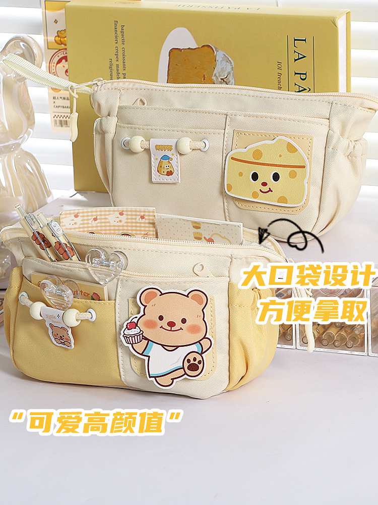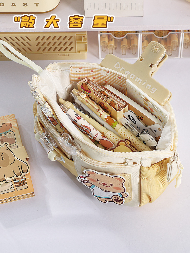 일본식 Ins 스타일 다기능 벨크로 카피 바라 연필 케이스 귀여운 대용량 틈새 다층 문구 가방