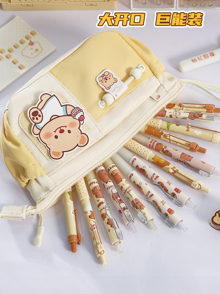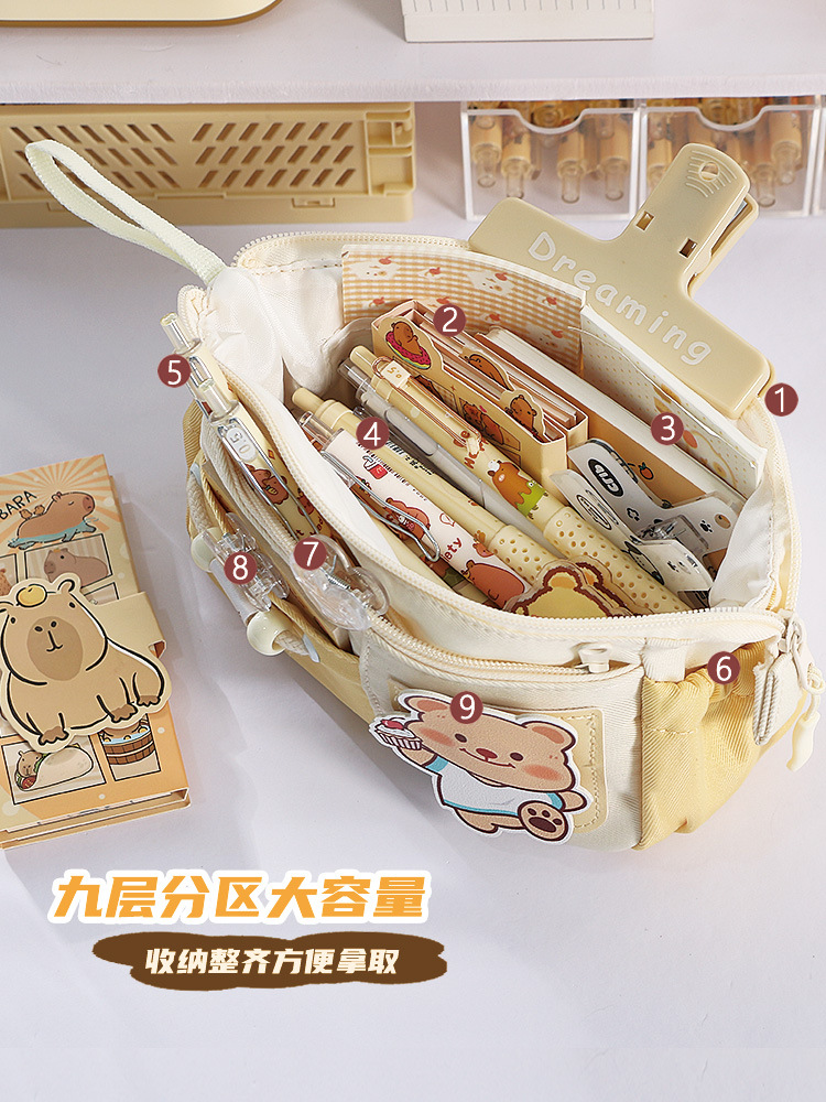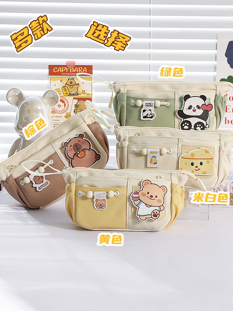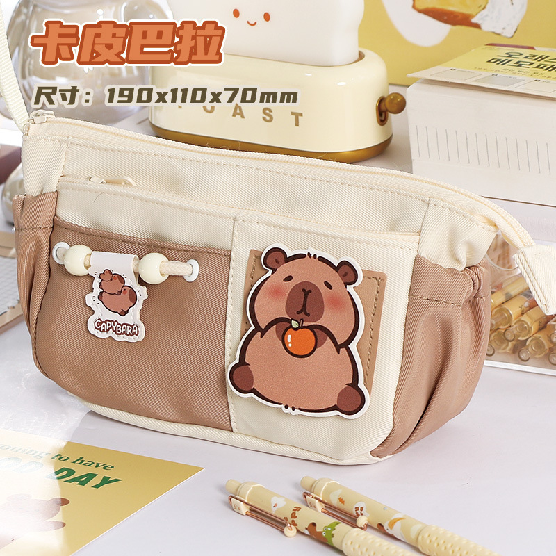 일본식 Ins 스타일 다기능 벨크로 카피 바라 연필 케이스 귀여운 대용량 틈새 다층 문구 가방스토어 가기