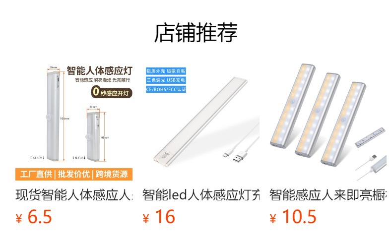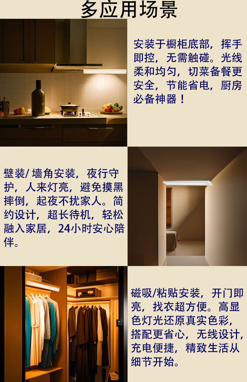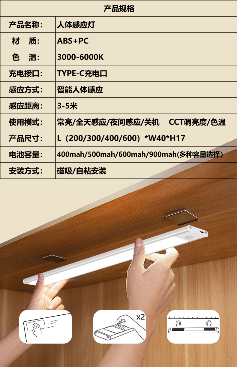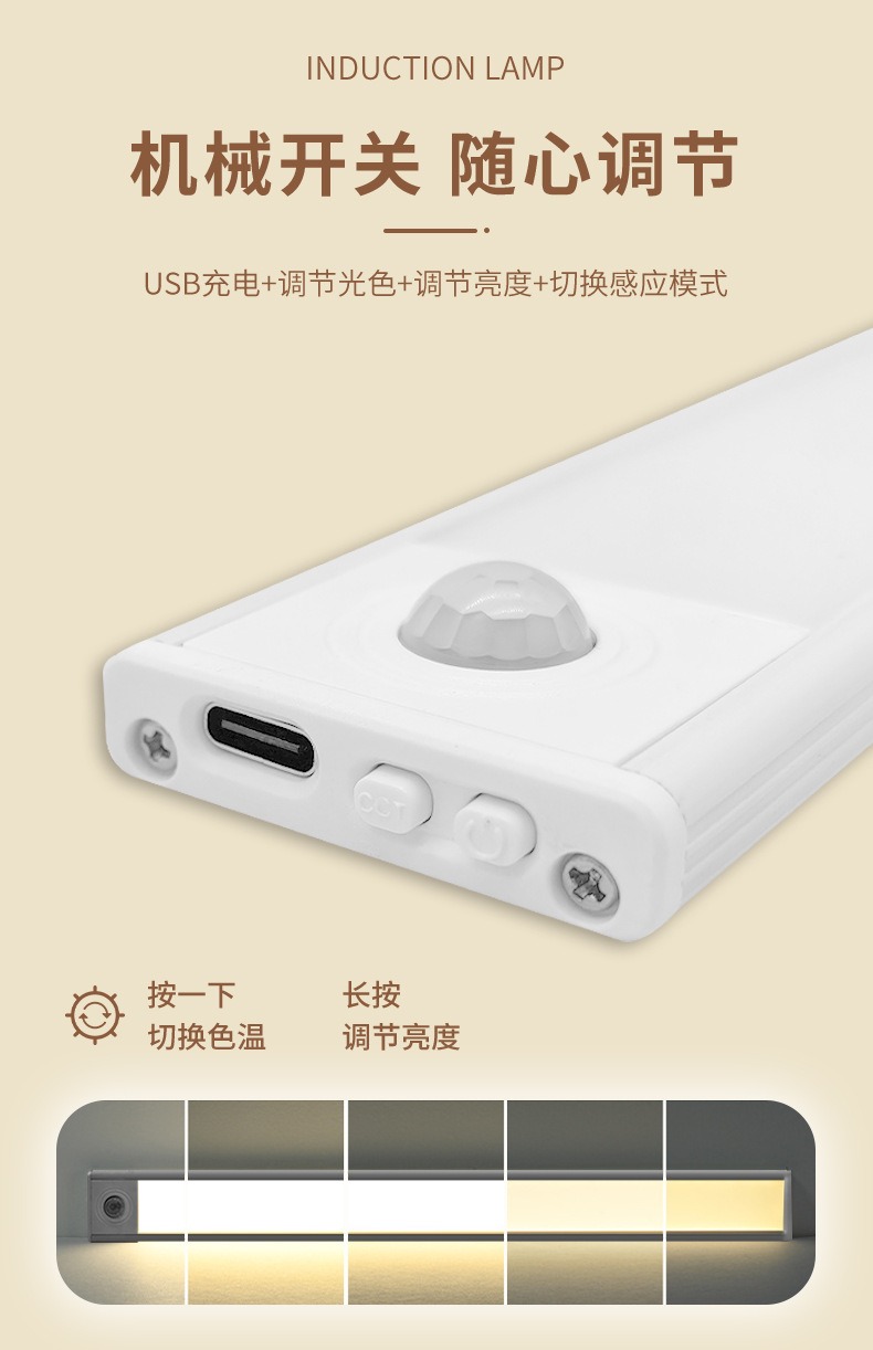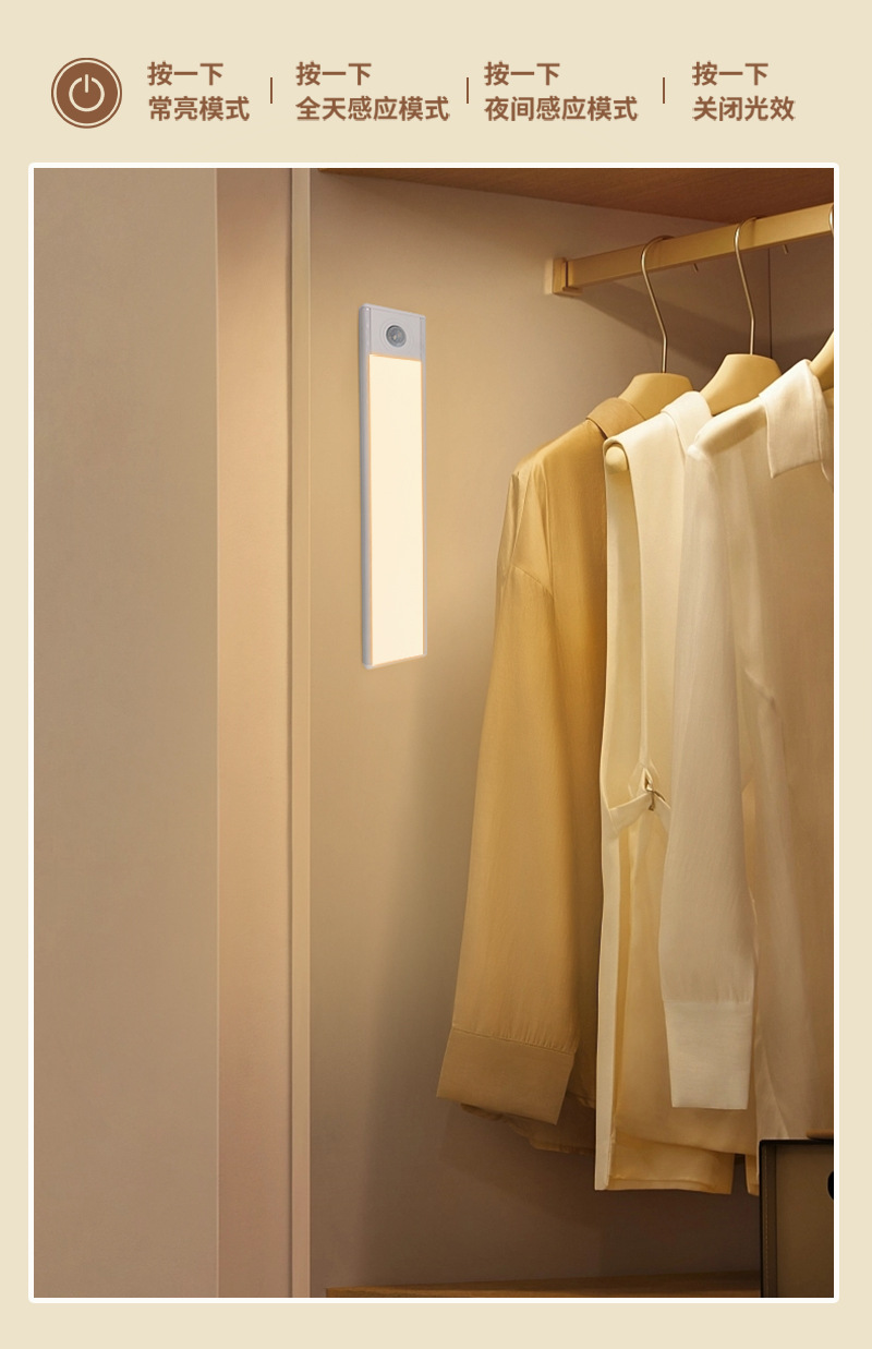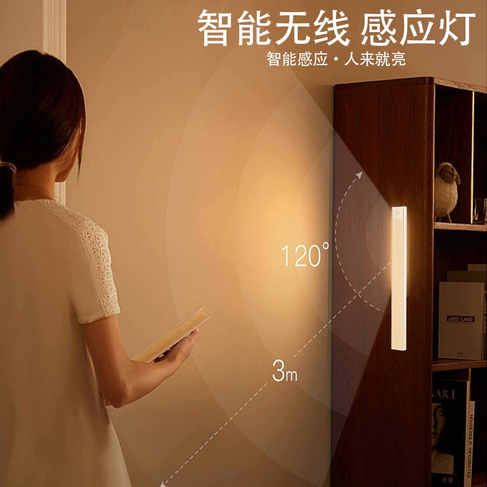 삼색 조명 인체 감지 센서가 있는 충전식 LED 스트립 조명, 옷장, 계단용 센서 야간등스토어 가기