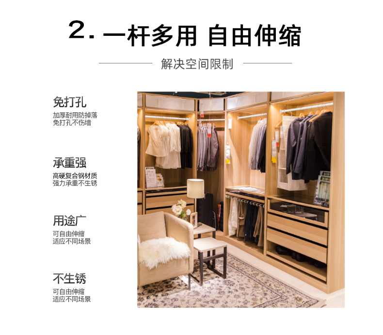 도매 도매 텔레스코픽 막대 비 천공 로마로드 커튼 막대 음영 옷 교수형 막대 욕실 멀티 섹션 지원 확장스토어 가기