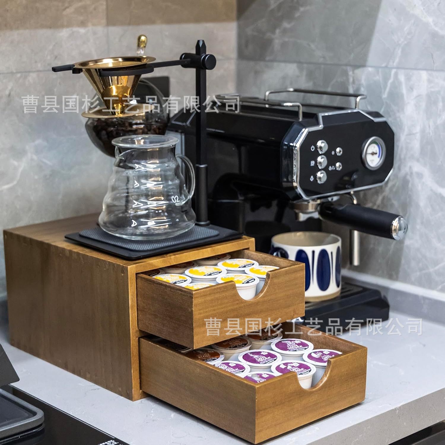 나무 커피 캡슐 보관 상자 티백 차 세트 보관 랙 서랍이있는 칸막이 커피 머신 홀더 소스 공장스토어 가기