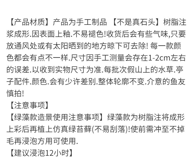 수조 조경, 가짜 바위 장식, 가짜 돌, 물고기 피난처, 시뮬레이션 수생 식물, 크고 작은 장식품 패키지, 도매 아마존