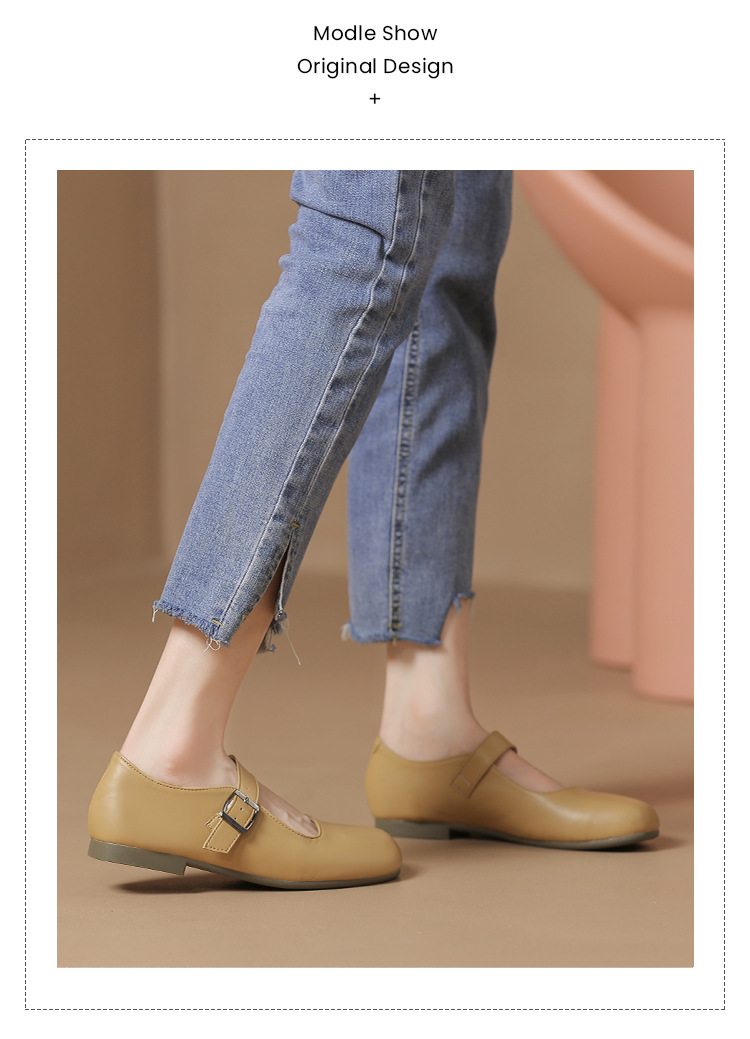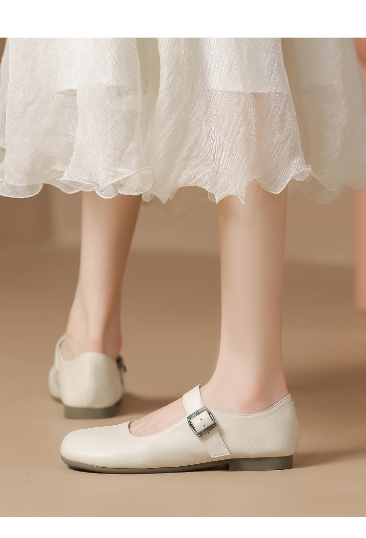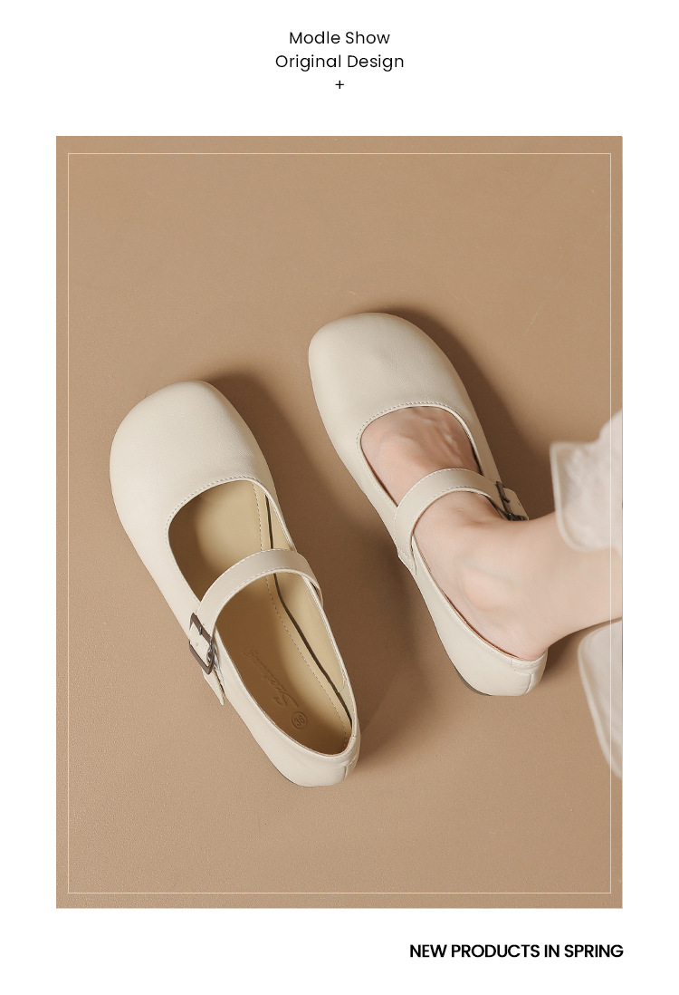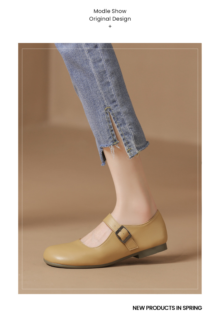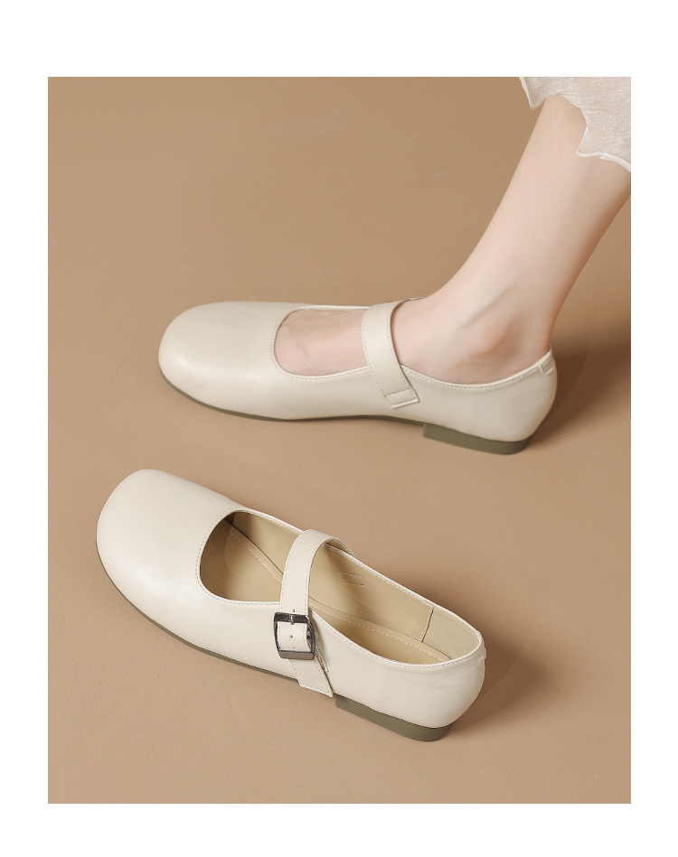 여성을위한 봄과 가을 얕은 입 메리 제인 신발 부드러운 가죽 부드러운 밑창 2024 새로운 플랫 신발 여름 작은 향기로운 스타일 비니 신발스토어 가기