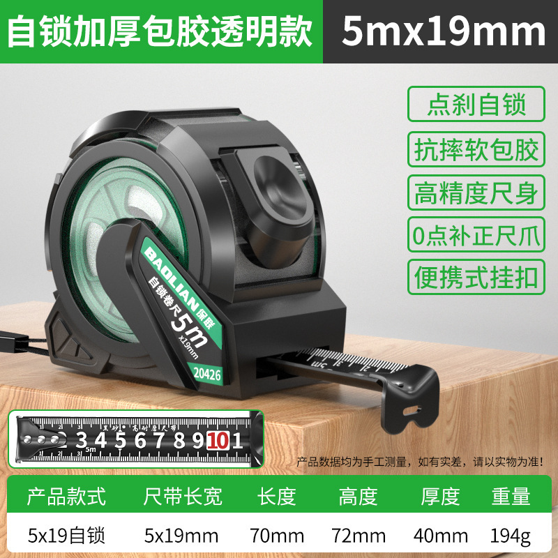 줄자, 고무 코팅, 자동 잠금, 두껍고 단단한 내마모성 강철 줄자, 가정용 측정 도구, 절단 방지 손자, 상자 자스토어 가기