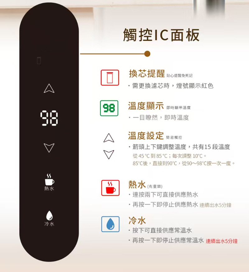 • 주방 터치 컨트롤 이중 온도 정수기