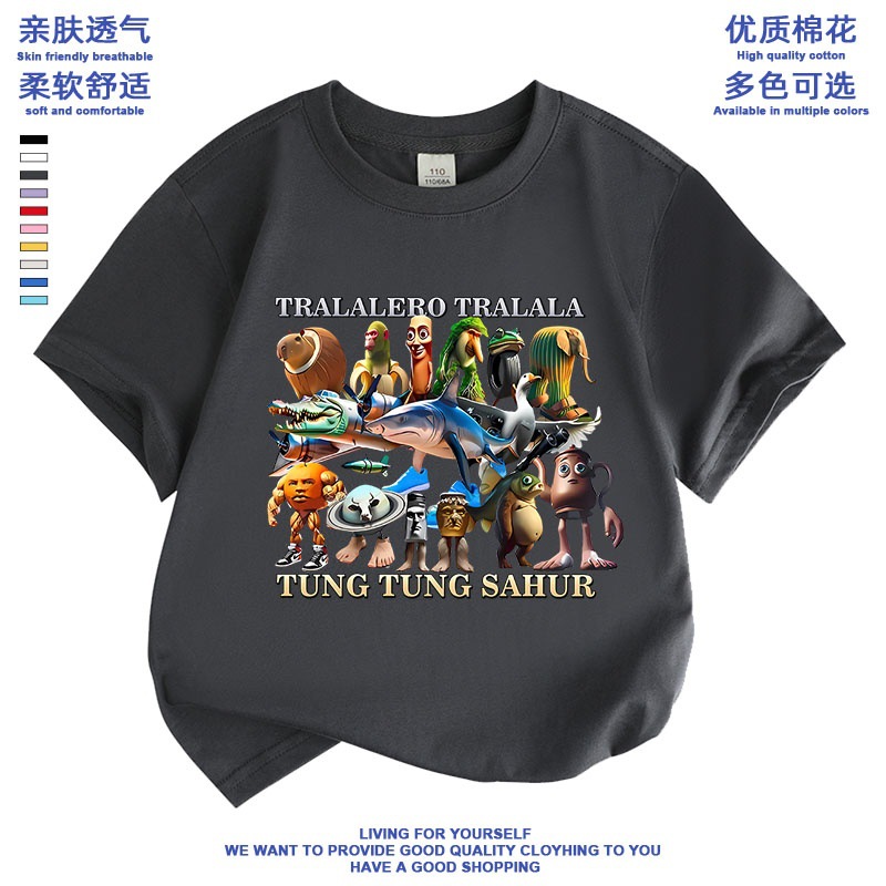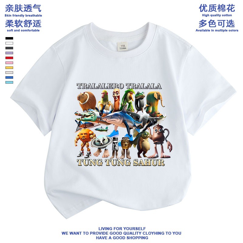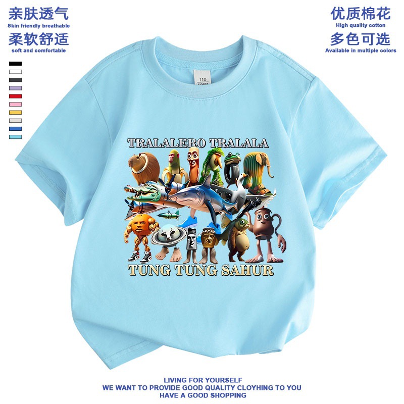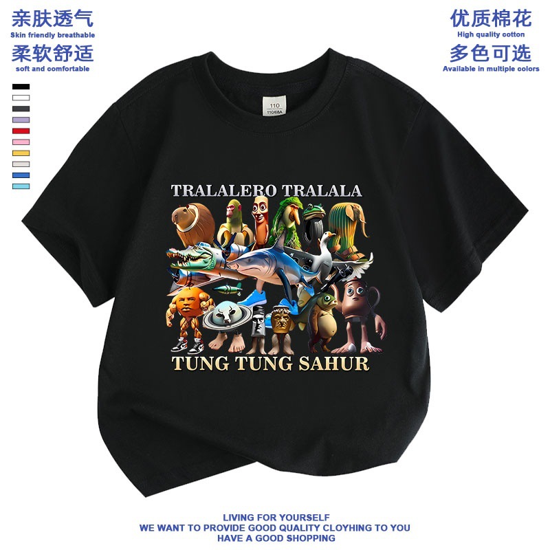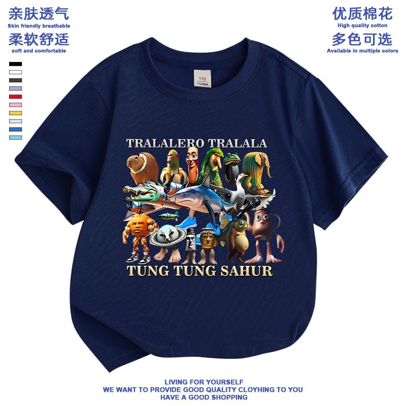 만화 ai Mountain and Sea Sutra 외국 산 및 바다 수트라 스틱 남자 퉁 신발 상어 애니메이션 어린이 학생 짧은 소매 티셔츠