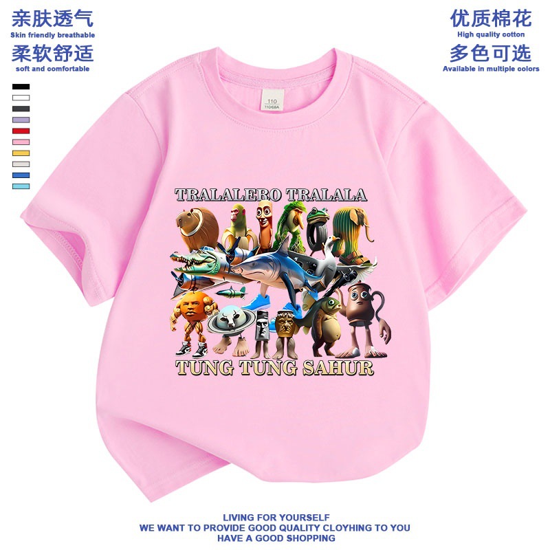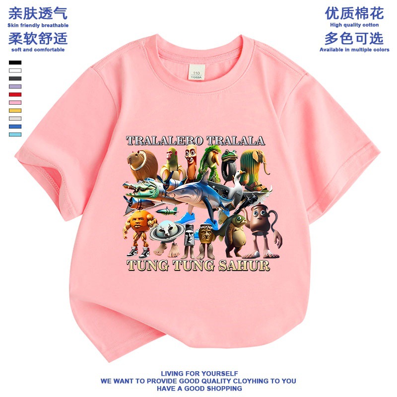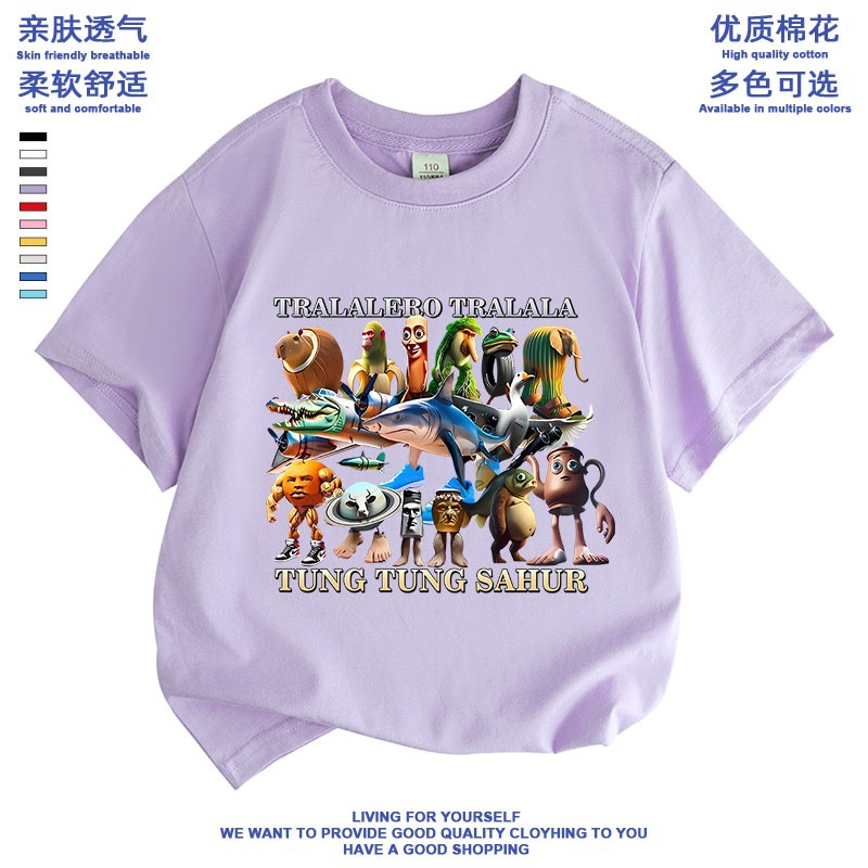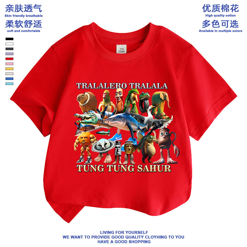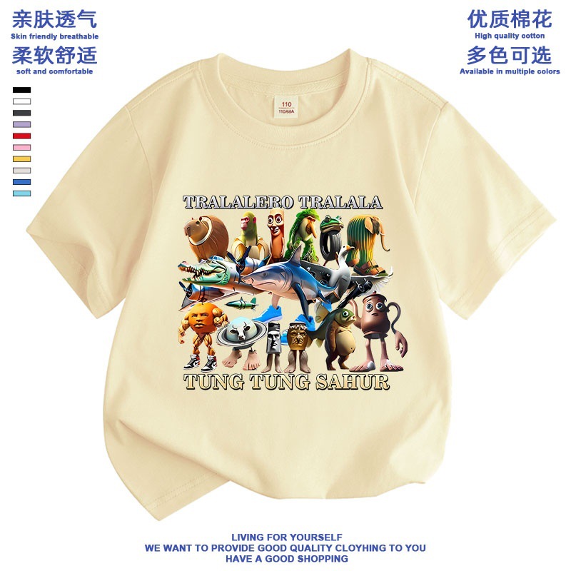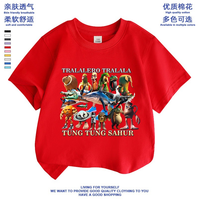 만화 ai Mountain and Sea Sutra 외국 산 및 바다 수트라 스틱 남자 퉁 신발 상어 애니메이션 어린이 학생 짧은 소매 티셔츠