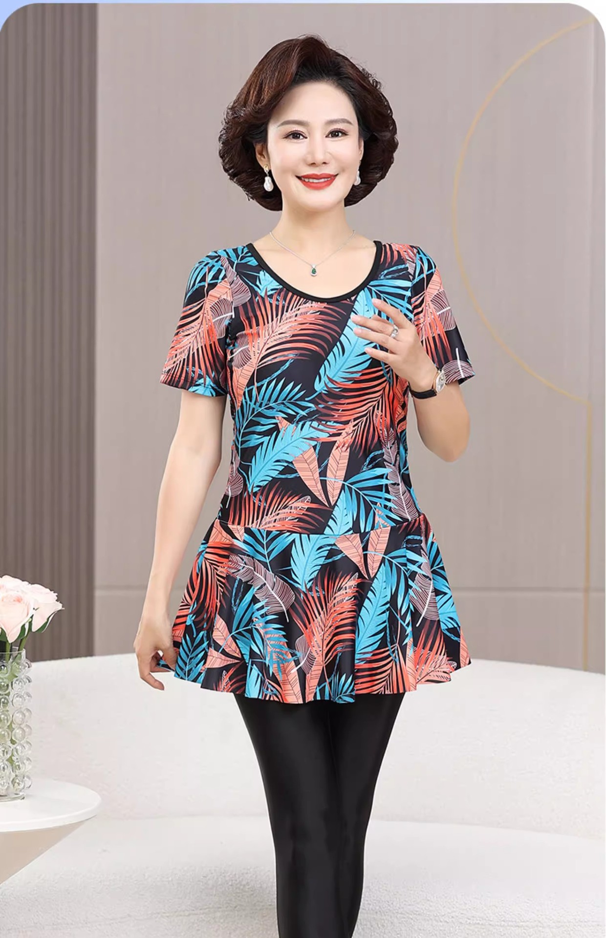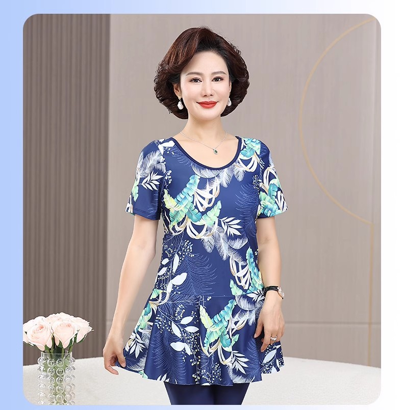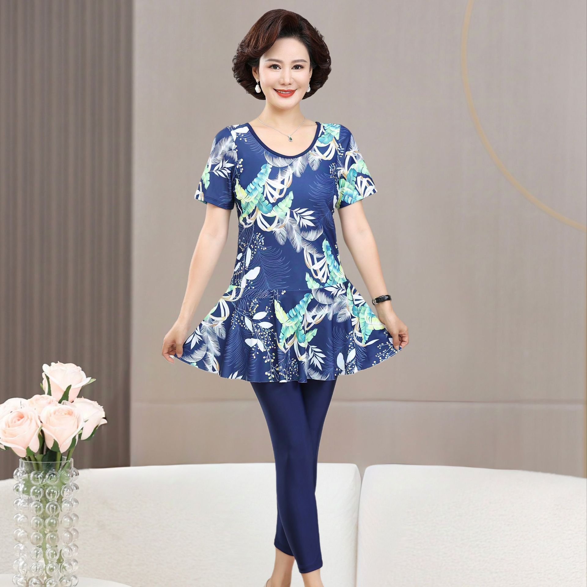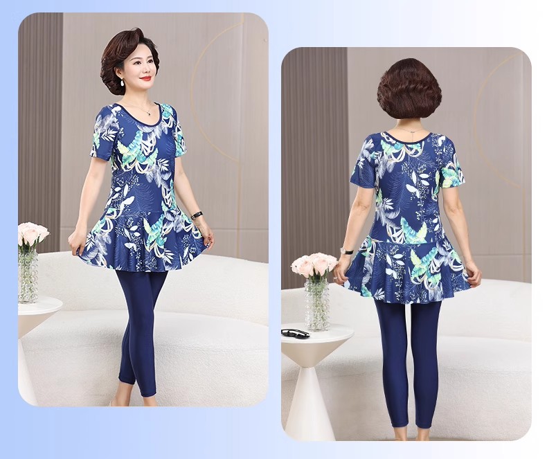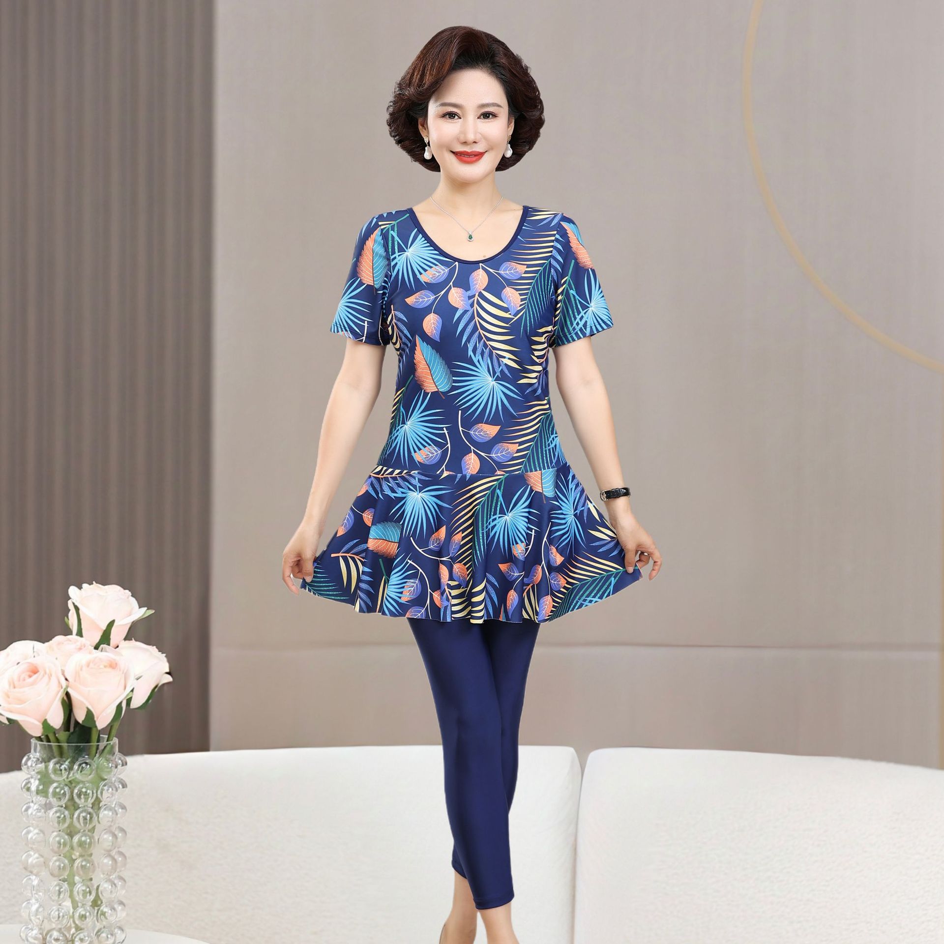 엄마 수영복, 중노년 여성을 위한 보수적인 스플릿 배 커버, 슬리밍 자외선 차단 바지, 노인 온천 수영복, 대형 사이즈