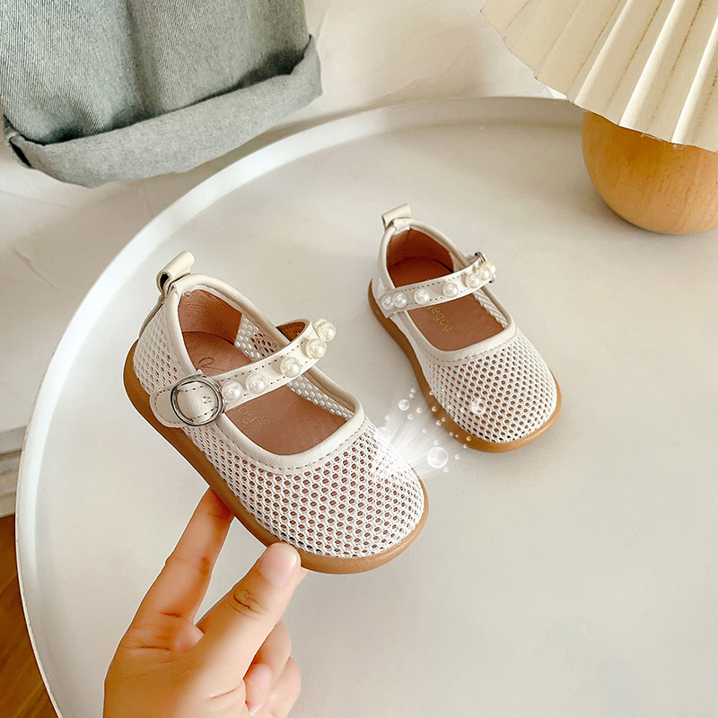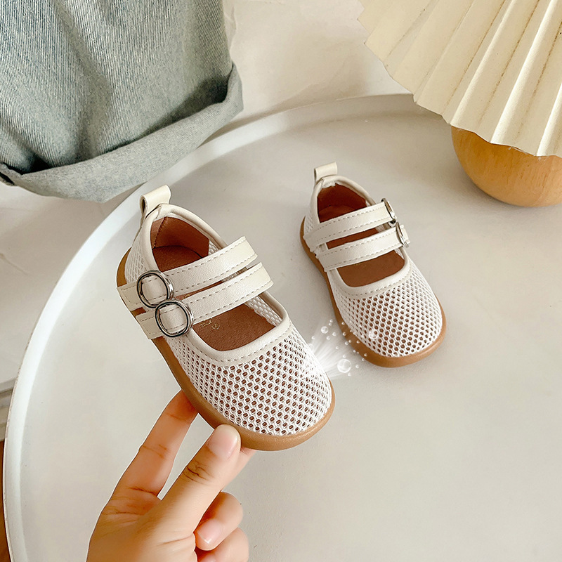 아기 소녀 유아 신발 2025 봄과 여름 새로운 메쉬 통기성 아기 신발 어린이 중공 공주 신발 하프 샌들
