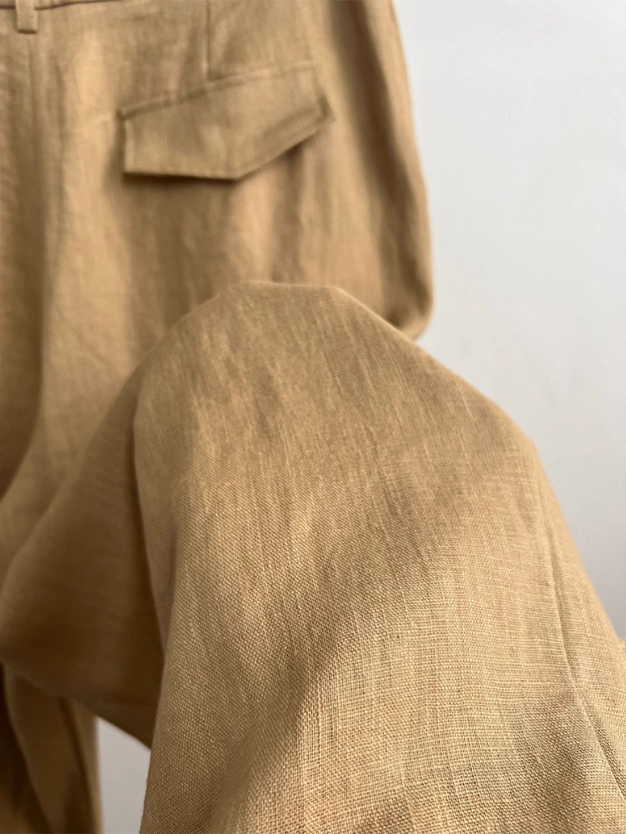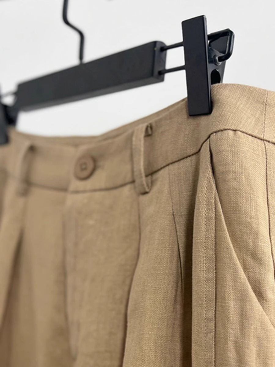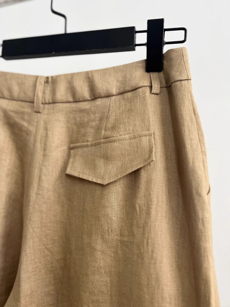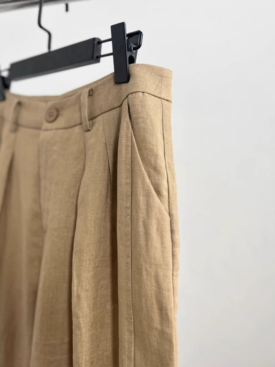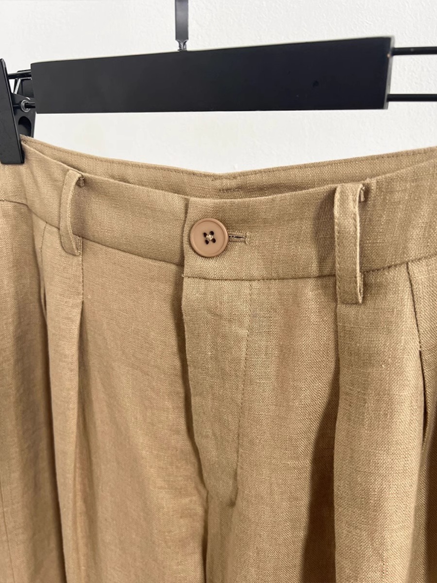엄청 폭발적인! 채널상품, 긴 다리를 뽐내는 스트리트 스타일, 여성용 올드머니 스타일의 커피색 린넨 와이드 팬츠