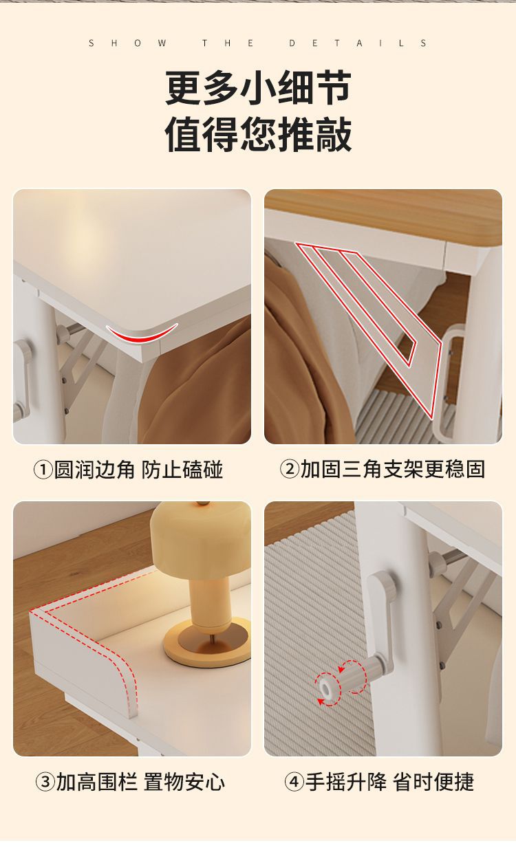 이동식 리프팅 단단한 나무 컴퓨터 책상 침대 크로스 테이블 홈 오피스 테이블 침대 옆 테이블 침대 테이블 침실 침대 끝
