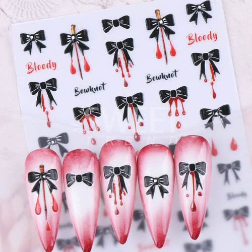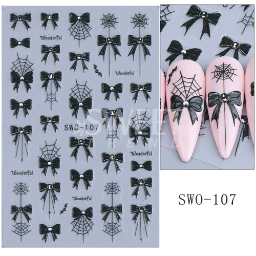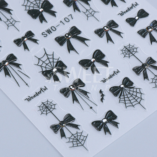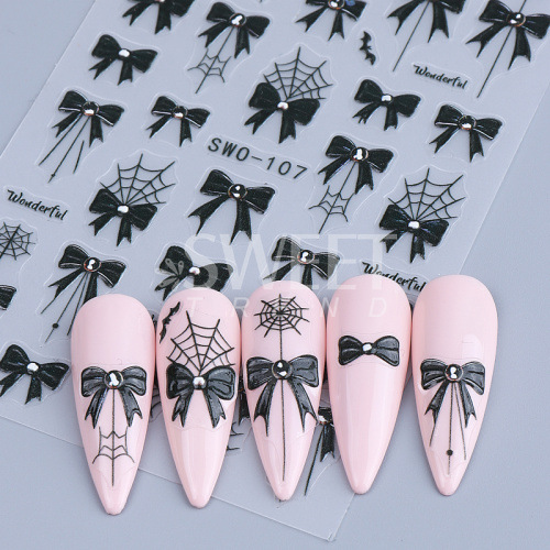 검은 나비 거미 웹 Y2K 접착 네일 데칼 도매 국경 새로운 할로윈 네일 아트 스티커