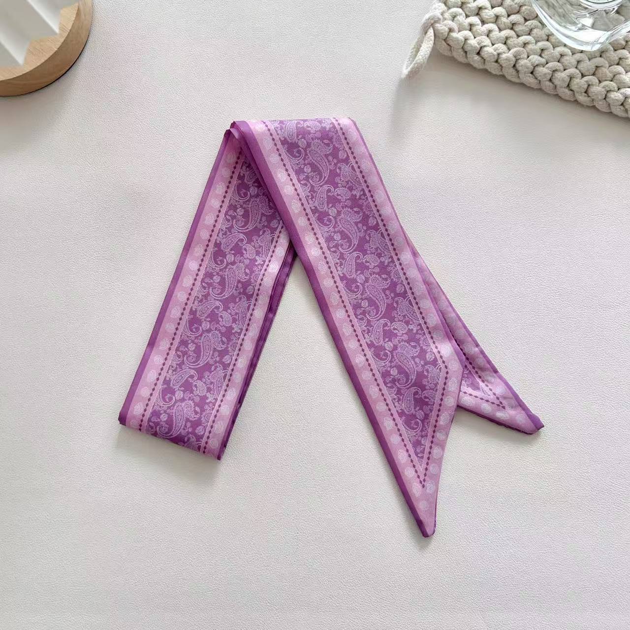 프렌치 레트로 얇은 실크 스카프, 심플한 캐슈넛 프린트 셔츠 스카프, 다기능 머리끈과 작은 리본