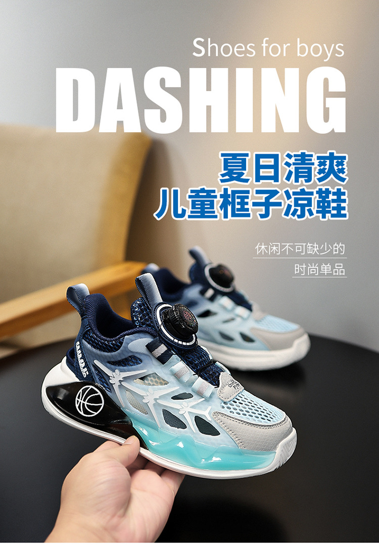 소년 샌들 2025 새로운 여름 스포츠 어린이 신발 소프트 단독 소녀의 중공 싱글 메쉬 스포츠 샌들
