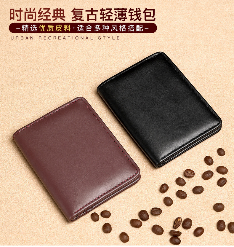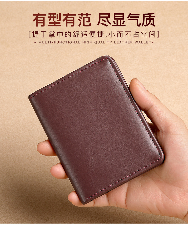 지갑 남자의 진짜 부드러운 가죽 수직 울트라 얇은 Cowhide 지갑 짧은 발렌타인 데이 선물 2025 새로운 카드 홀더