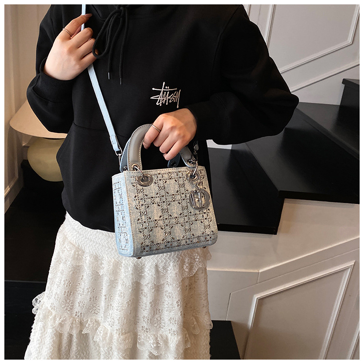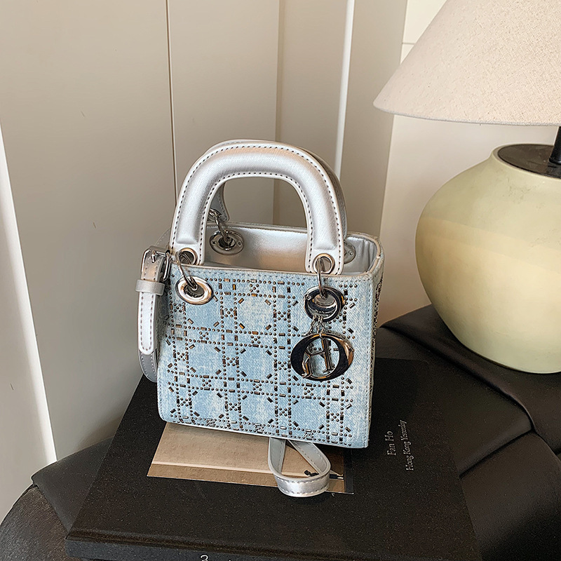 새로운 다이아몬드가 박힌 미니 일광욕 가방 2025 라이트 럭셔리 중공업 휴대용 소형 가방 고급 Rhomboid 패션 연회 가방 크로스 바디 백스토어 가기