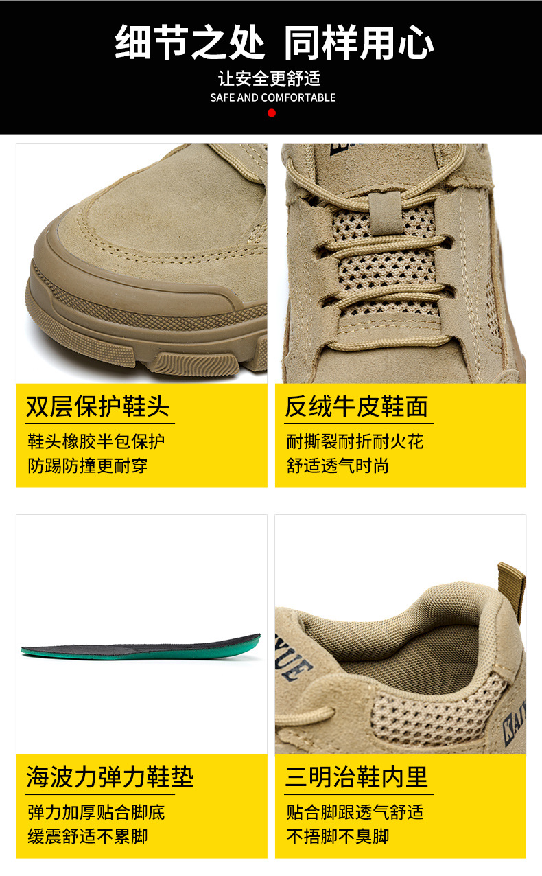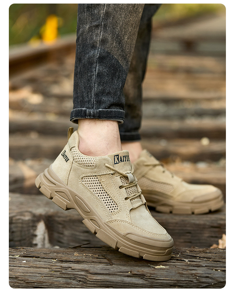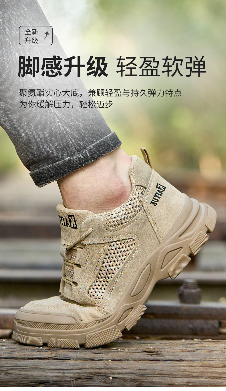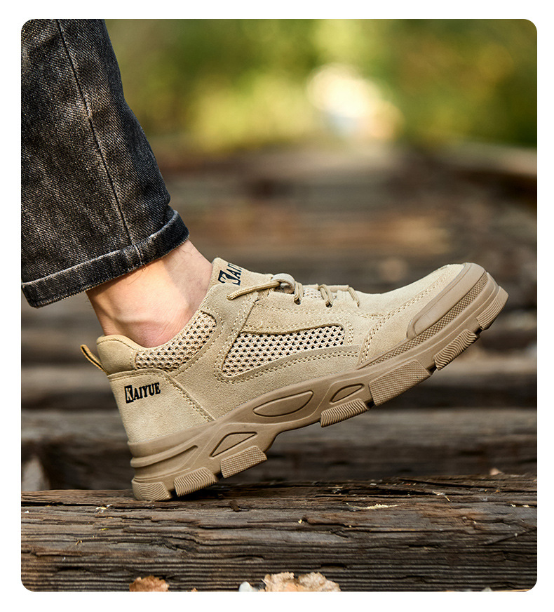 남성용 안전화, 충격 방지, 찔림 방지, 메쉬 통기성, 소가죽, 불꽃 방지, 내마모성, 접힘 방지, 미끄럼 방지, 용접공 현장화, 내구성