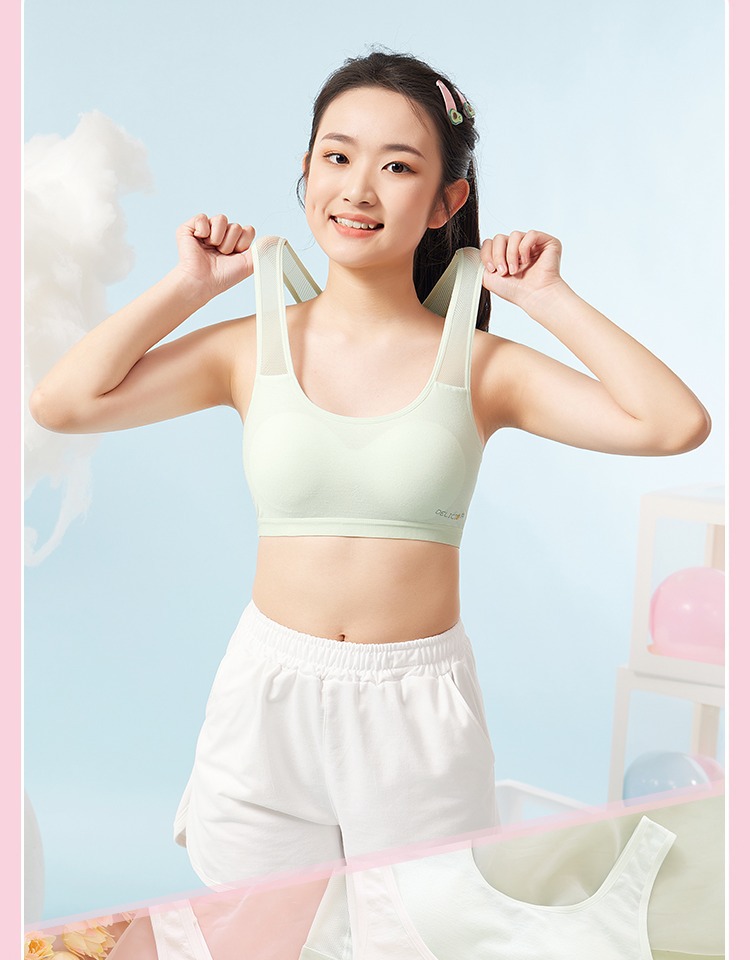 여아 속옷 발달기 학생 메쉬 통기성 스포츠 충격 방지 조끼 중학생 및 고등학생 여아 브라 얇은