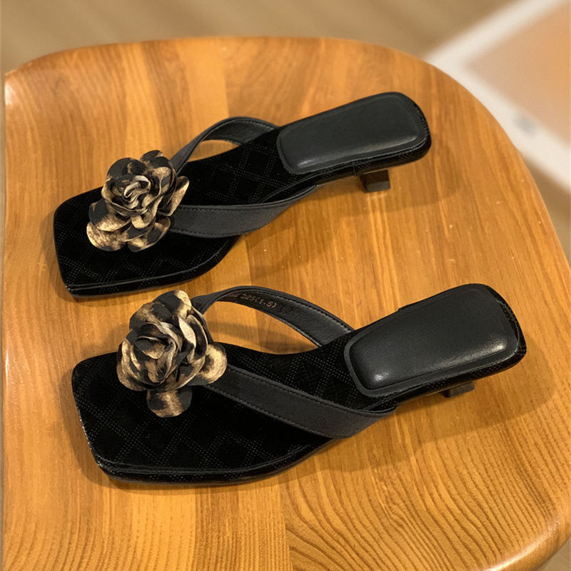 꽃 플립 플롭 여성 아우터웨어 2025 새로운 여름 인터넷 인기 패션 섹시한 얇은 굽 샌들스토어 가기