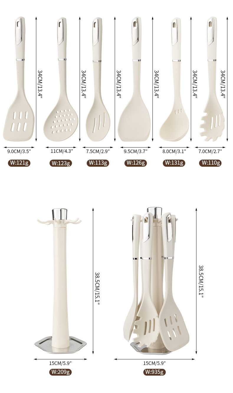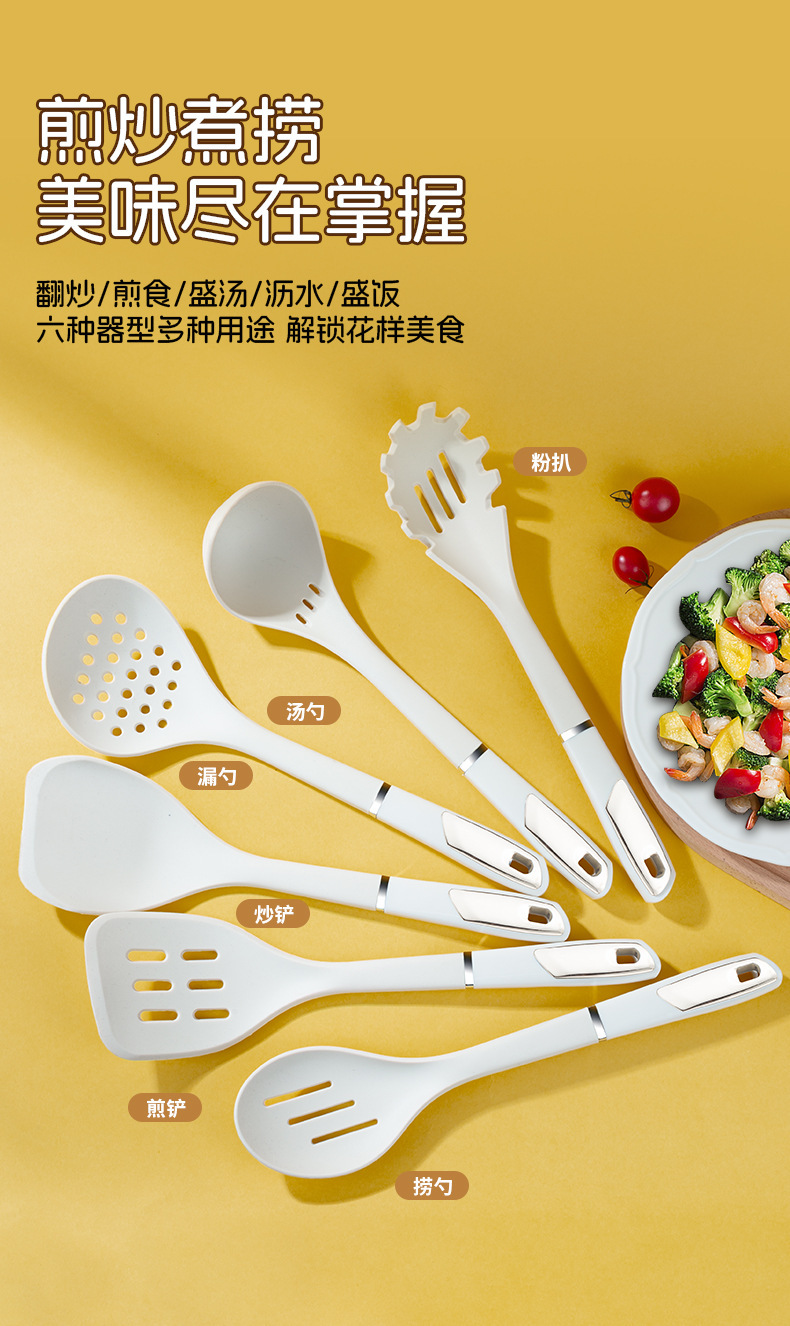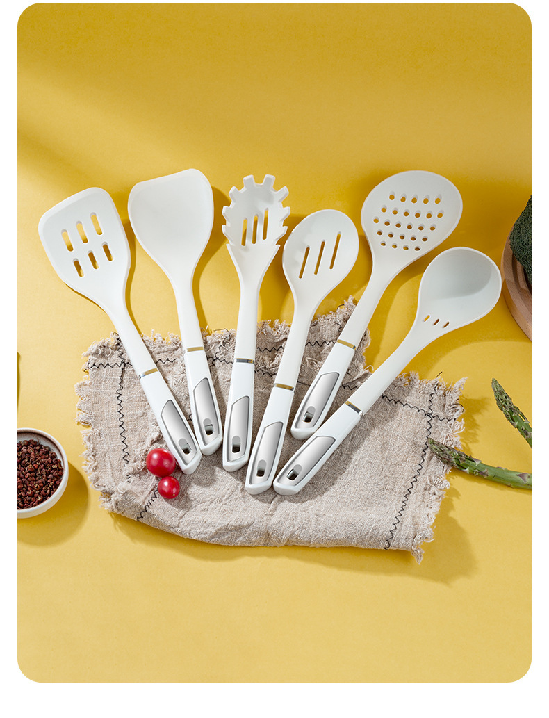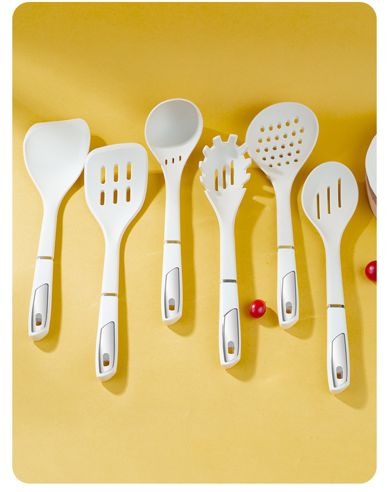 실리콘 주방용품 7 조각 세트 가정용 옷걸이 볶음 슬리퍼 수프 스푼 주방 요리 삽 스푼 세트 재고