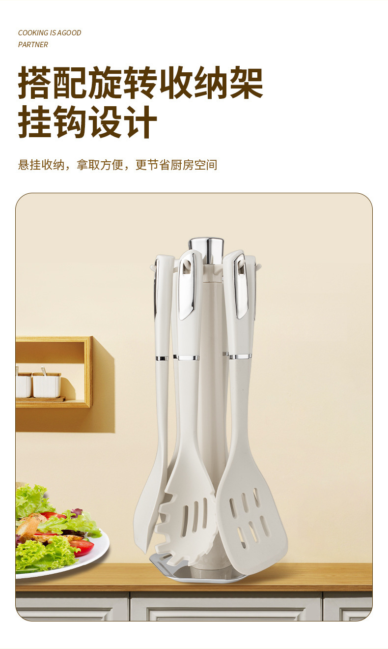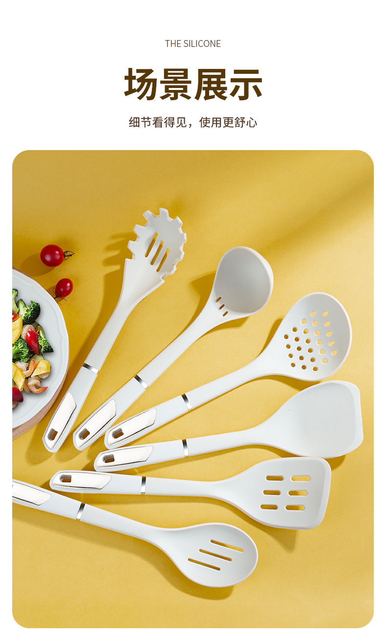실리콘 주방용품 7 조각 세트 가정용 옷걸이 볶음 슬리퍼 수프 스푼 주방 요리 삽 스푼 세트 재고스토어 가기