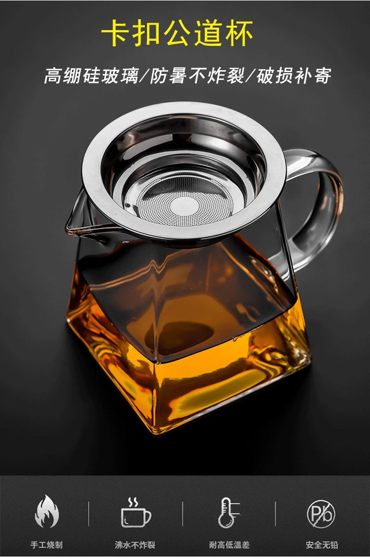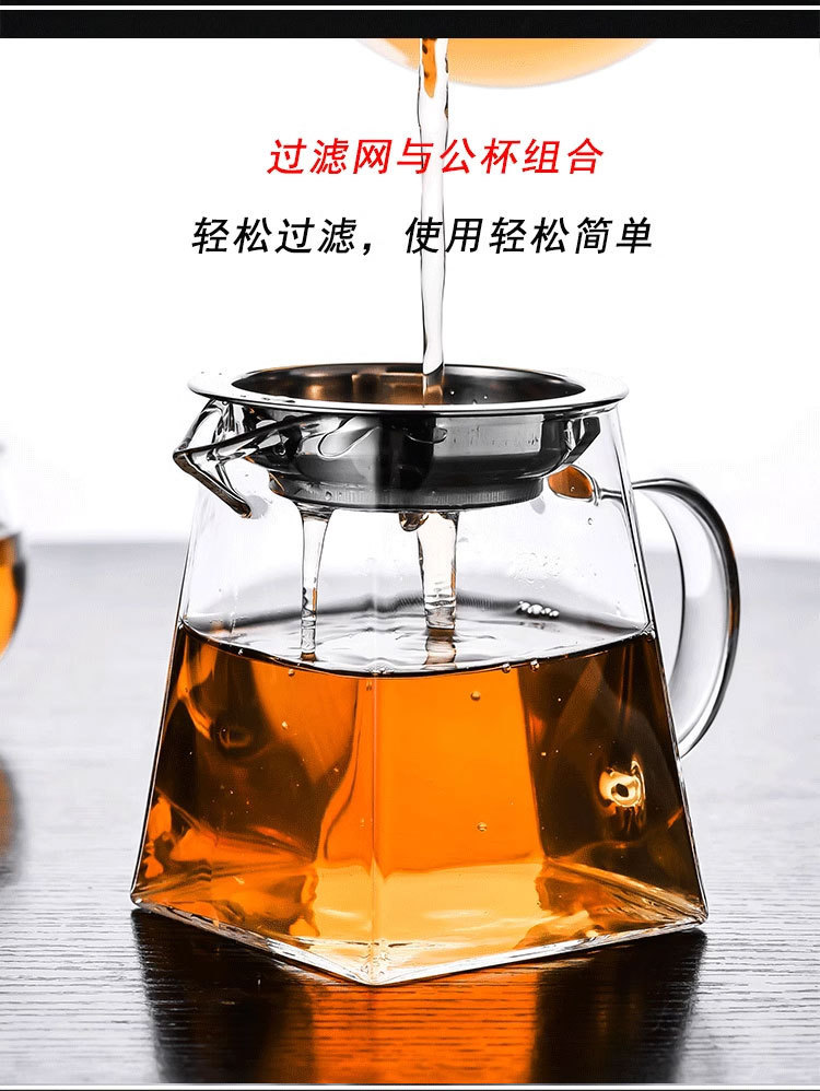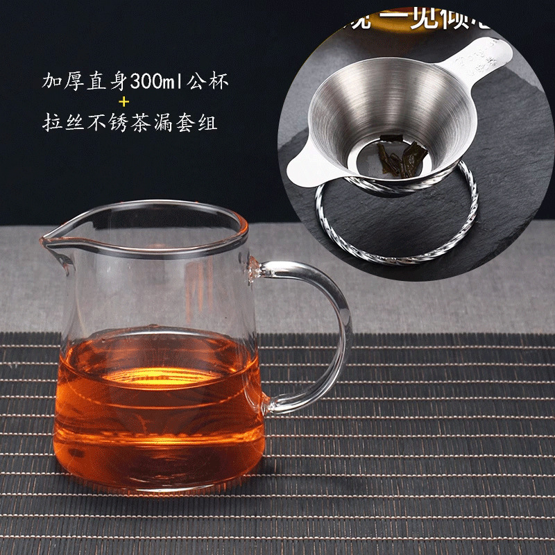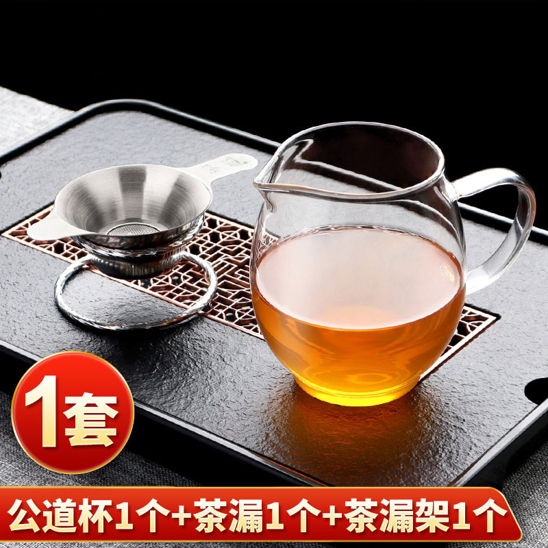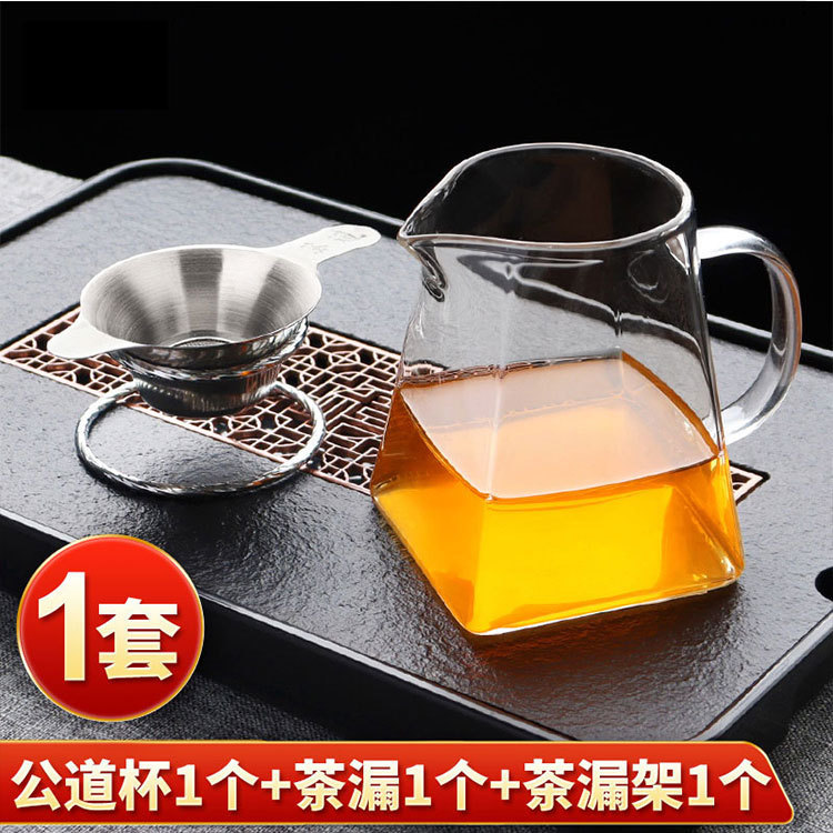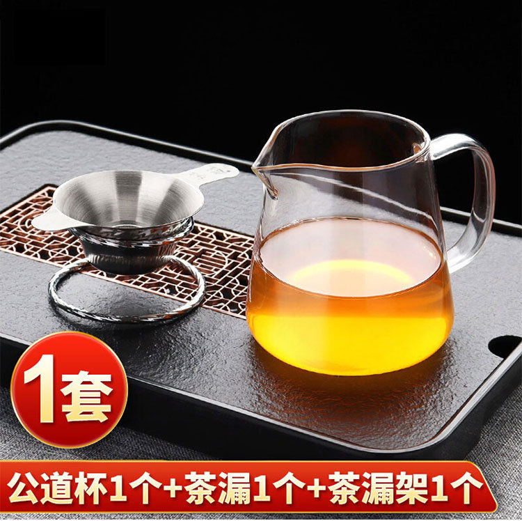 유리 차 세트 쿵푸 대형 스몰 사이즈 두꺼운 고 붕규산 내열성 공공 컵 3 조각 세트 차 배수 필터 메쉬 차 세트스토어 가기