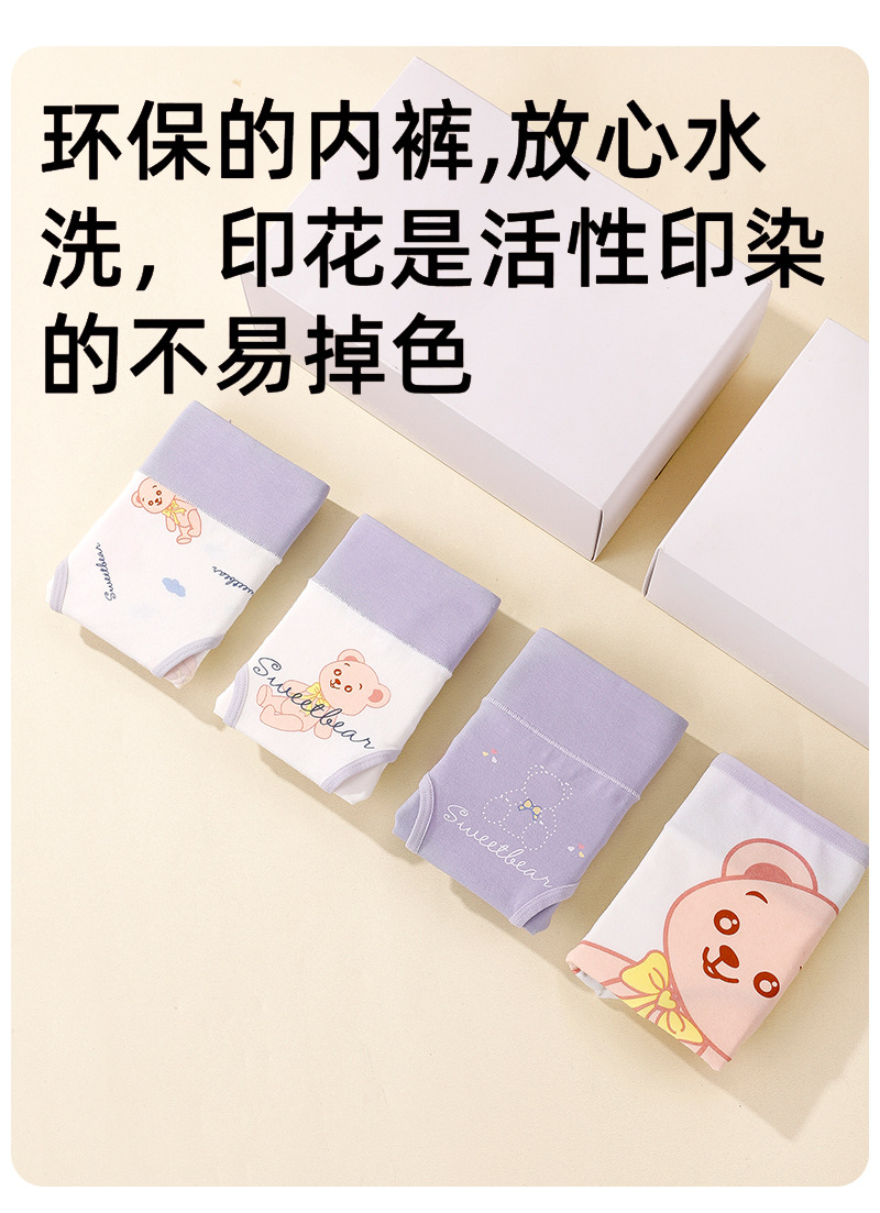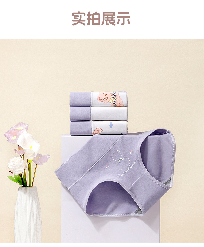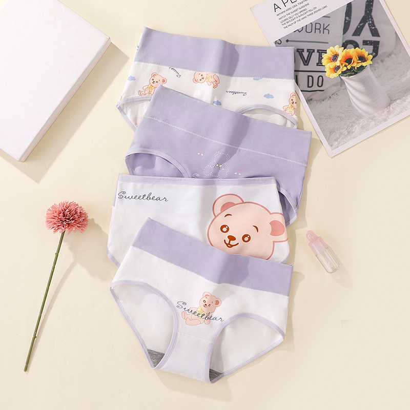 편안하고 통기성이 뛰어난 순면 속옷 4팩, 항균 가랑이 중간 허리 피부 친화적인 삼각 반바지, 여학생을 위한 순면스토어 가기