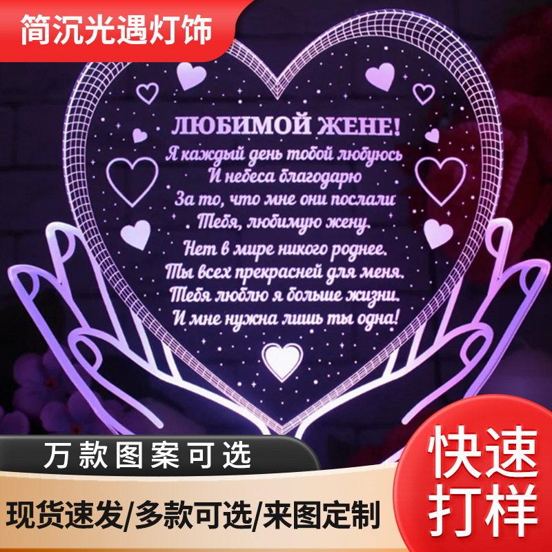 국경 간 대외 무역 공급 감성 3D 야간 조명 침실 수면 조명 원격 제어 다채로운 침대 옆 아크릴 테이블 램프 도매