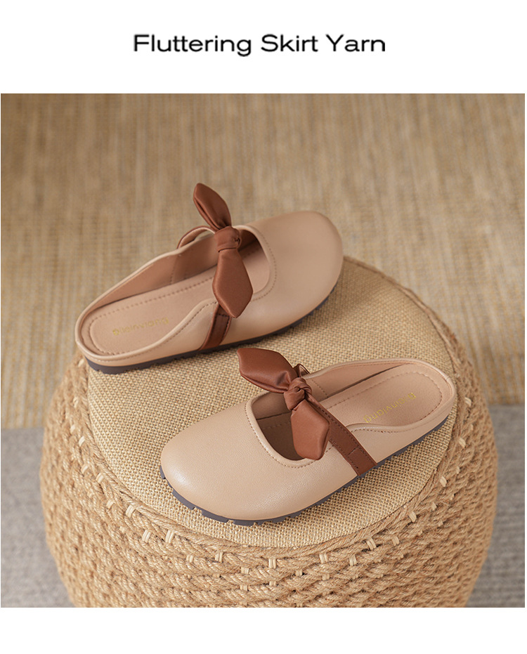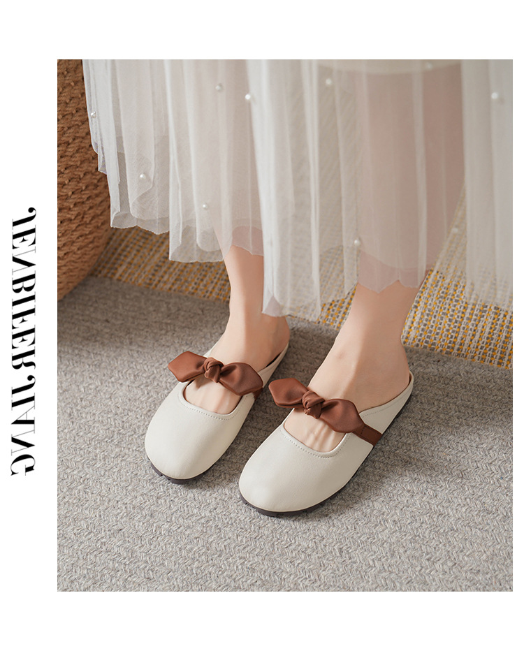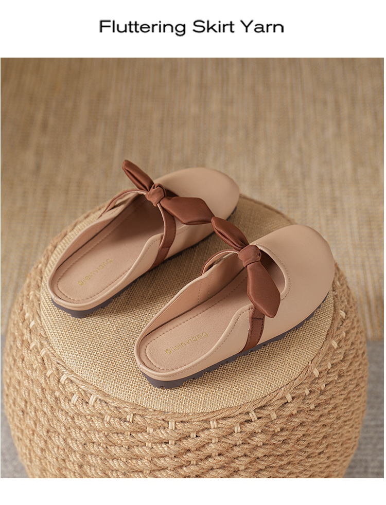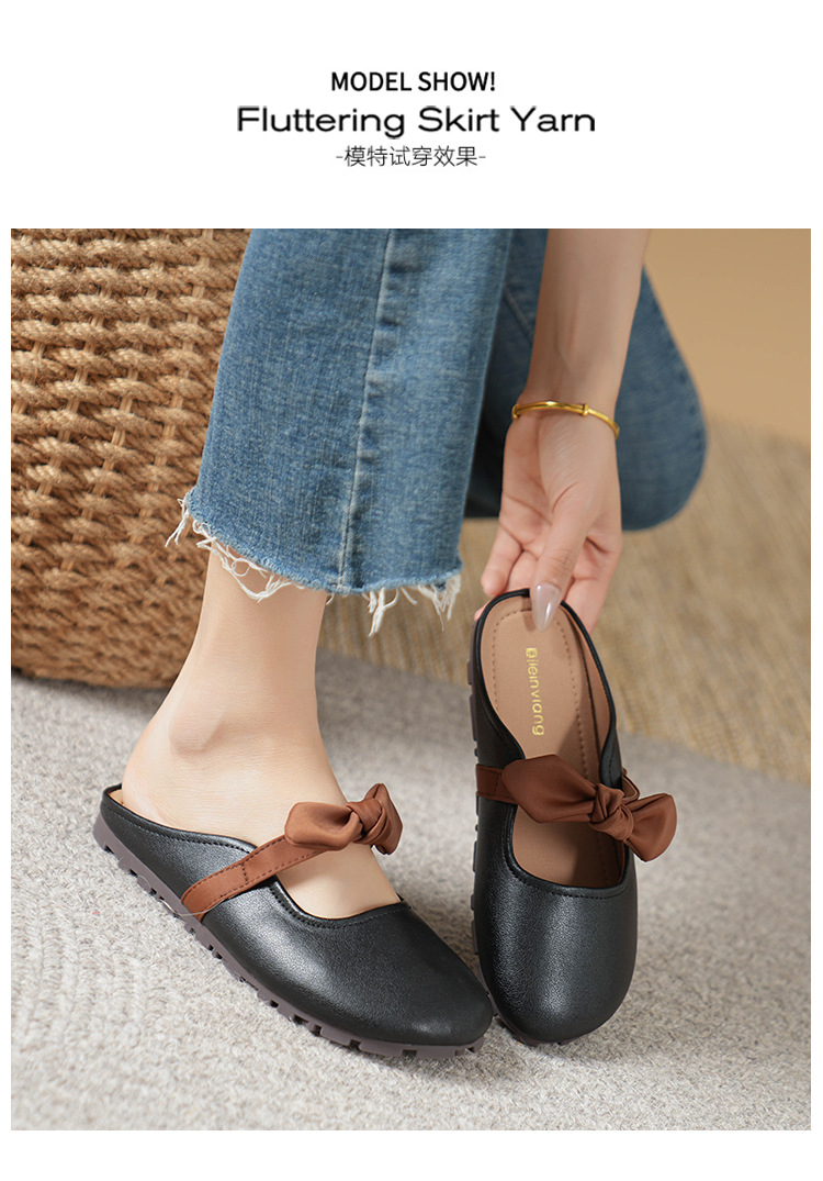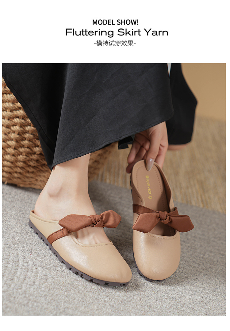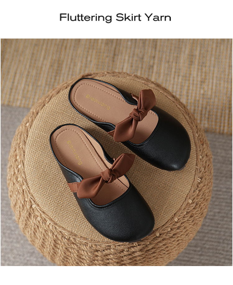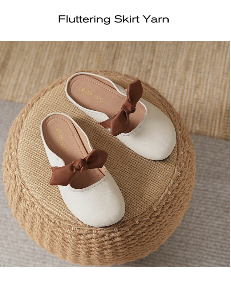 여성용 요정 스타일 보우 토우 하프 슬리퍼 2025 뉴 여름 소프트 플랫 프렌치 외출 샌들