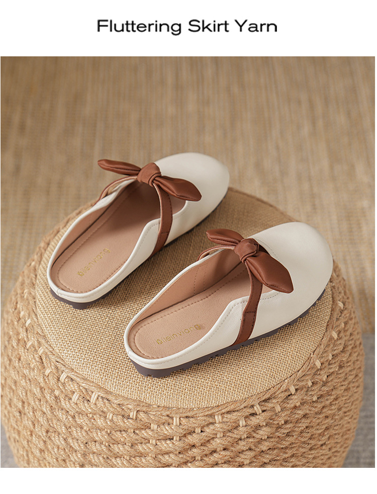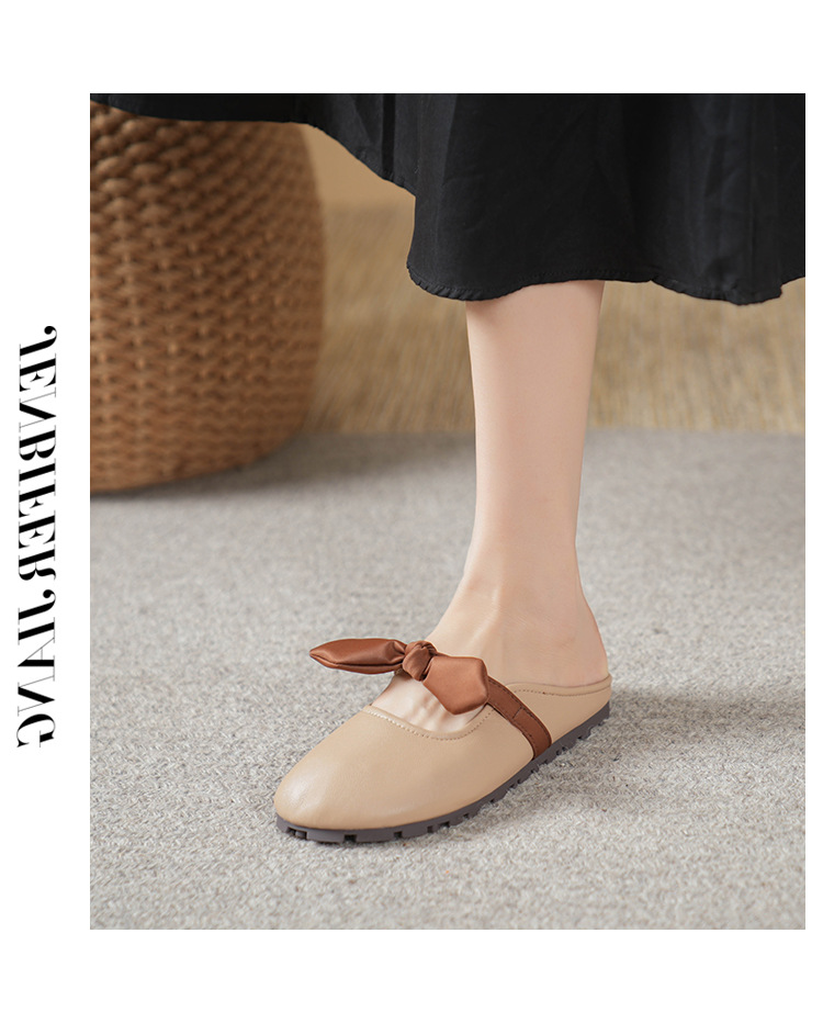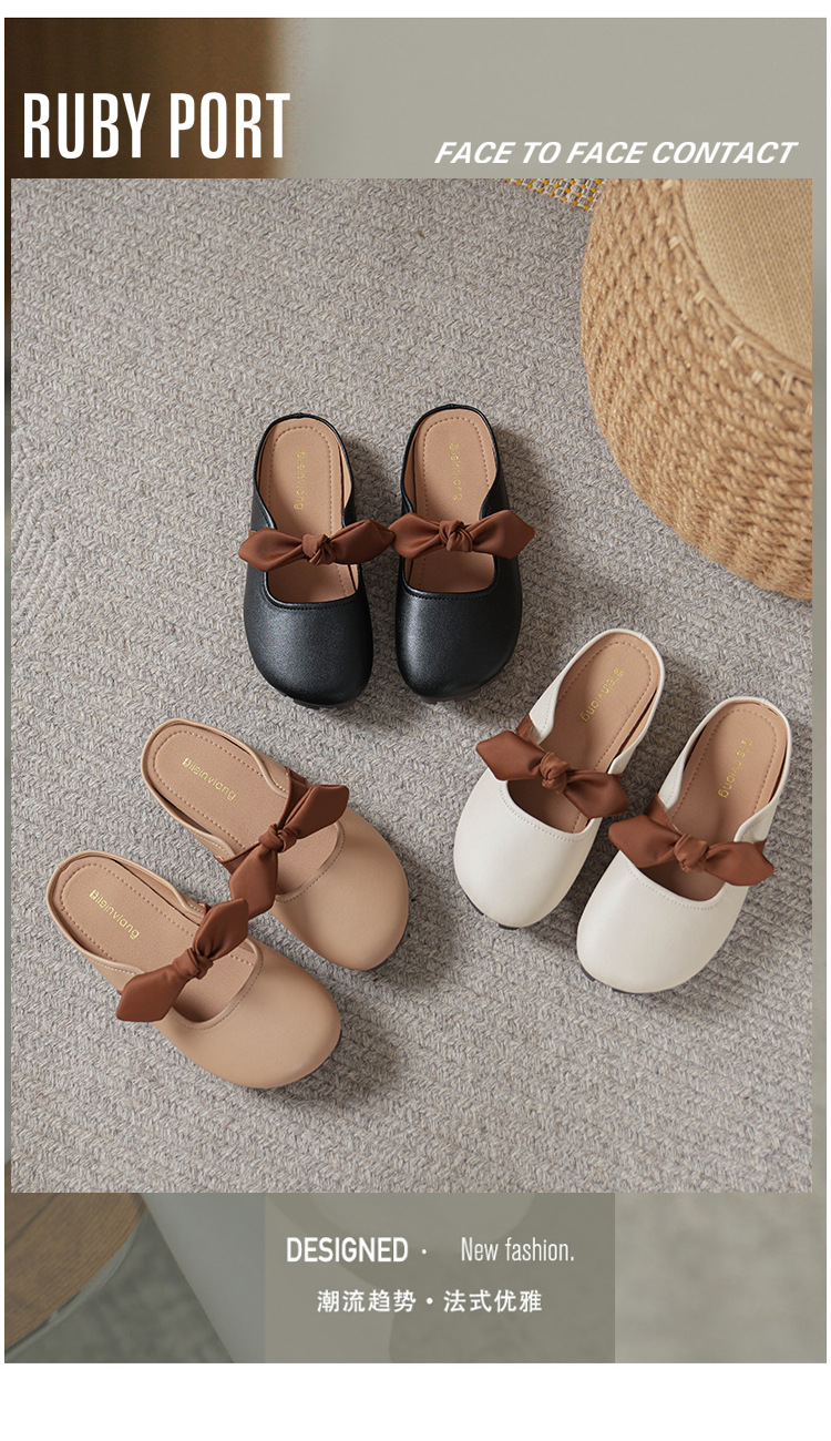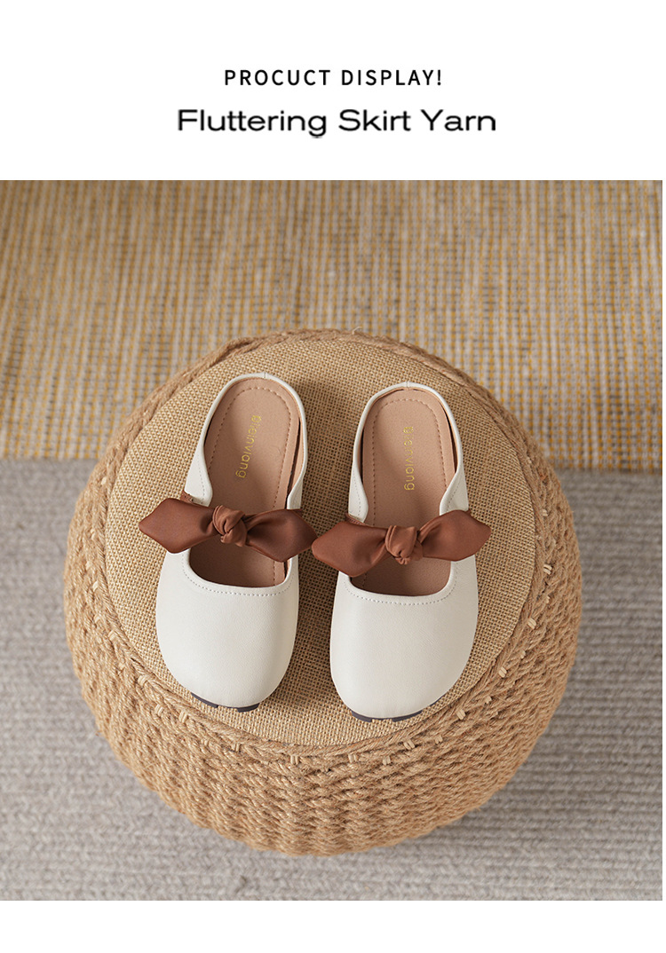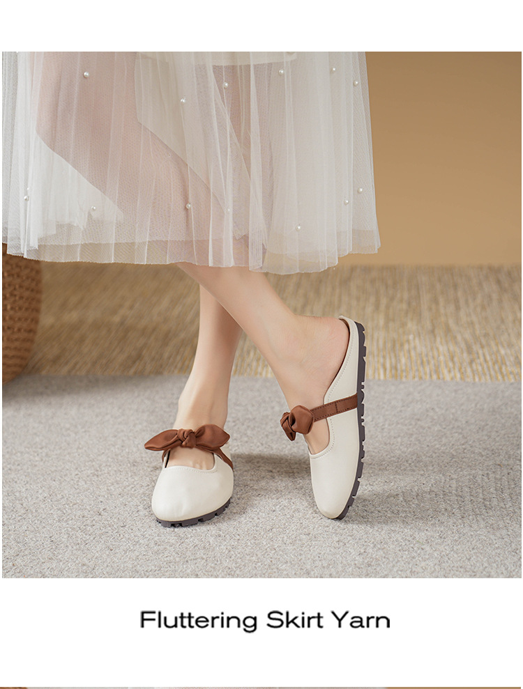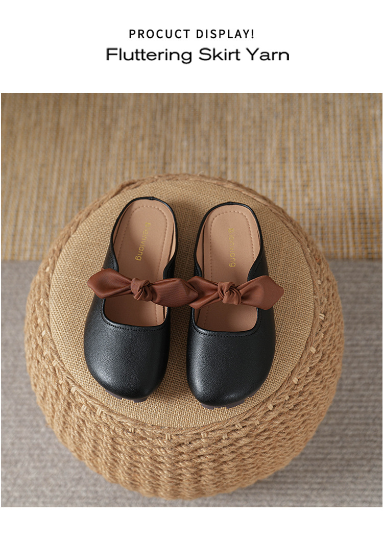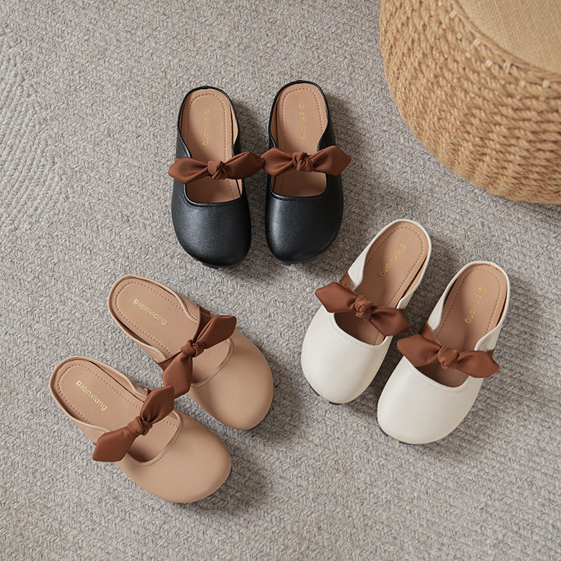 여성용 요정 스타일 보우 토우 하프 슬리퍼 2025 뉴 여름 소프트 플랫 프렌치 외출 샌들