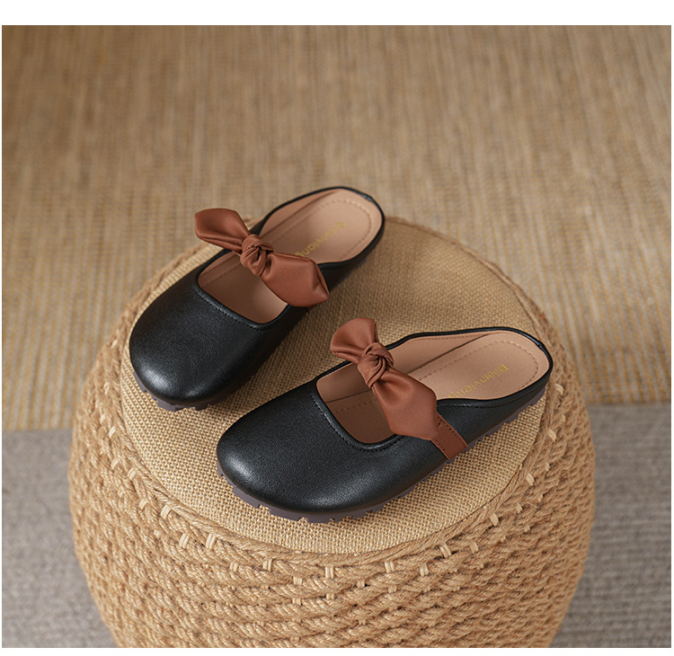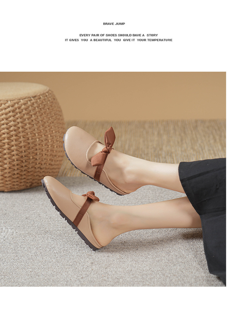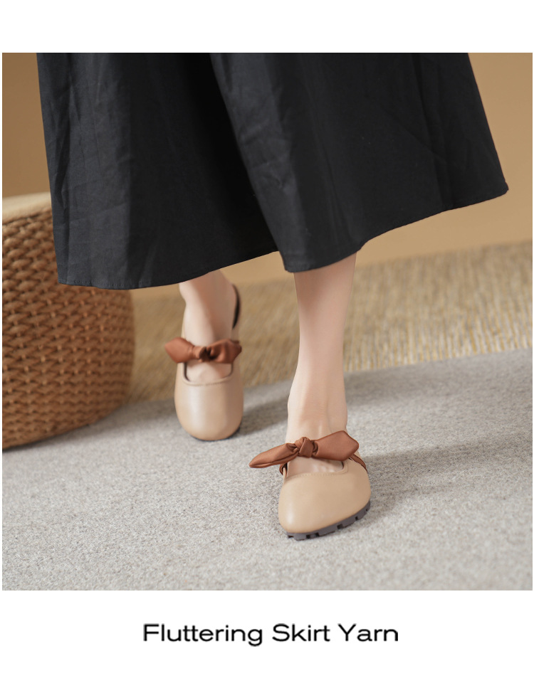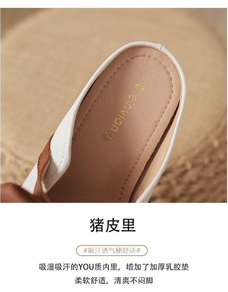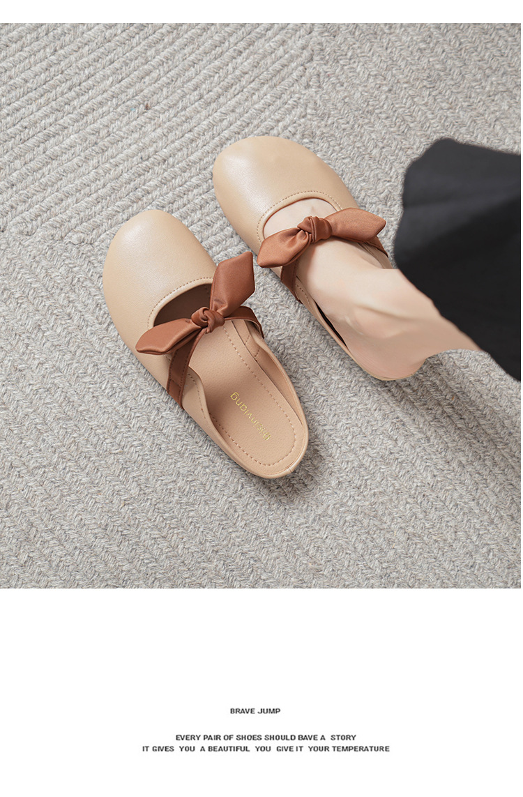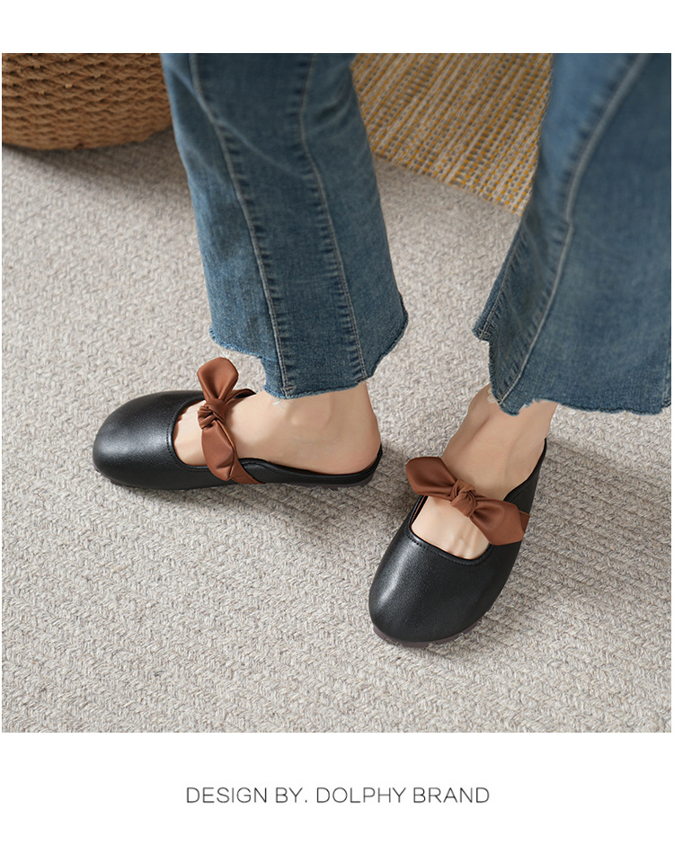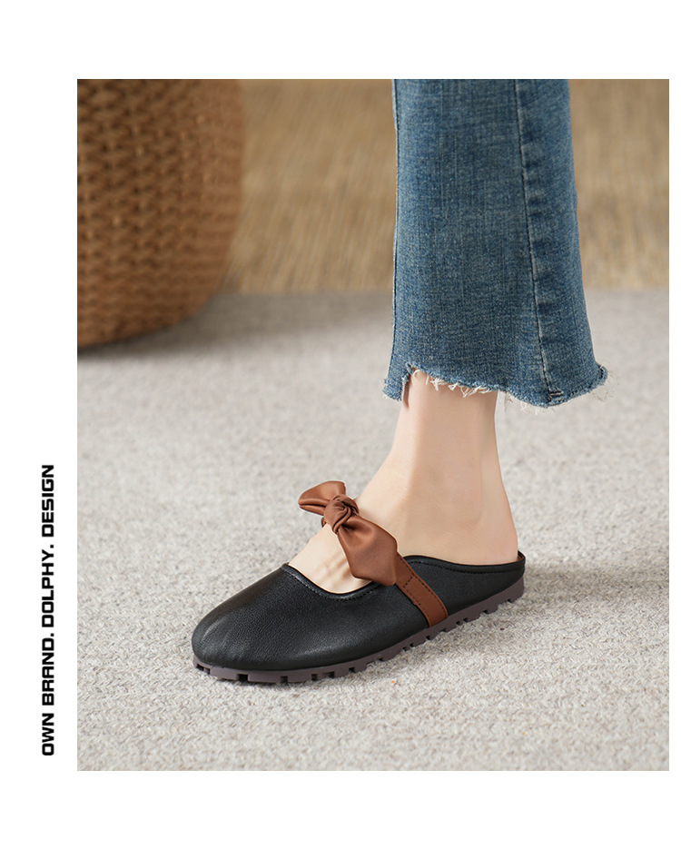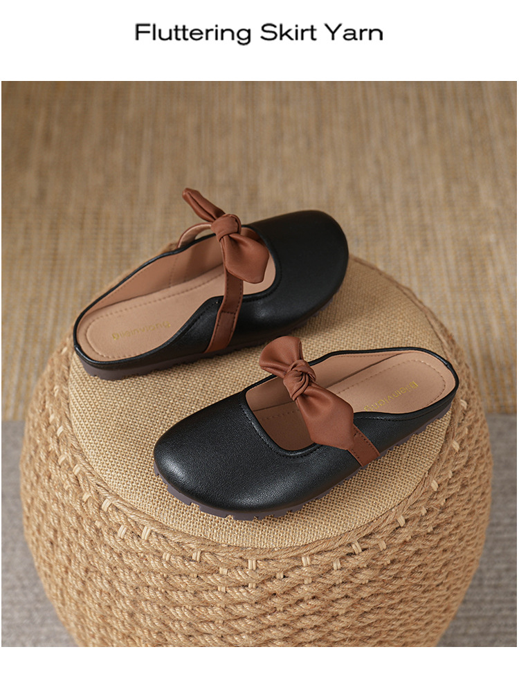 여성용 요정 스타일 보우 토우 하프 슬리퍼 2025 뉴 여름 소프트 플랫 프렌치 외출 샌들