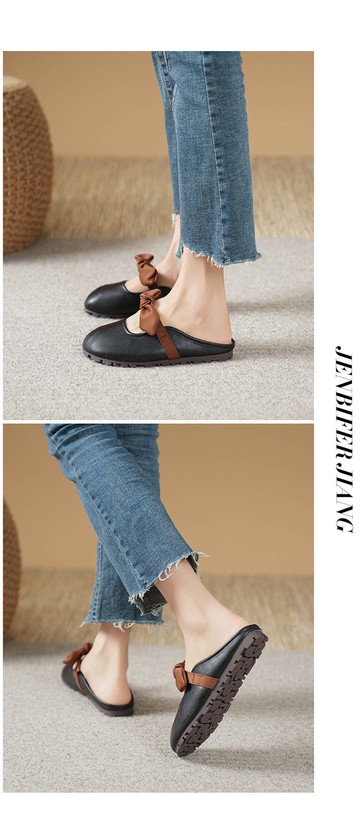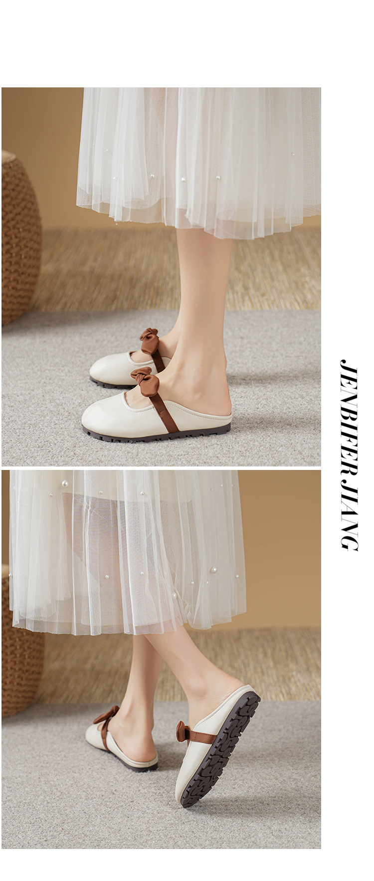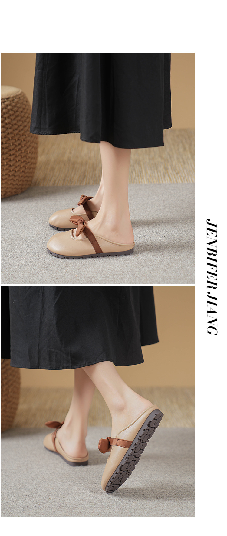 여성용 요정 스타일 보우 토우 하프 슬리퍼 2025 뉴 여름 소프트 플랫 프렌치 외출 샌들스토어 가기
