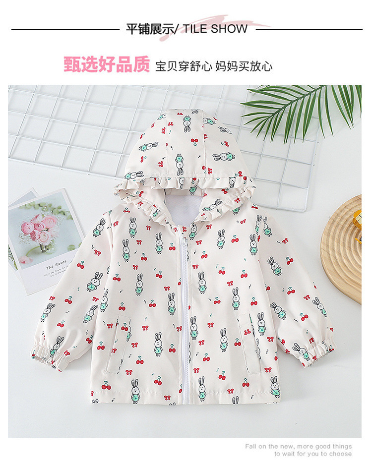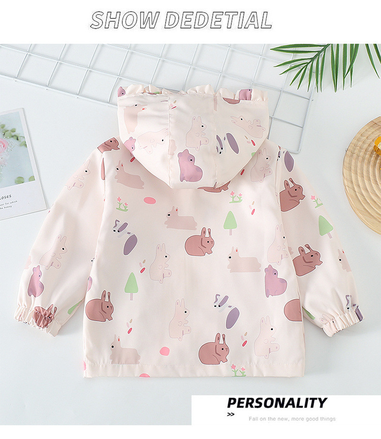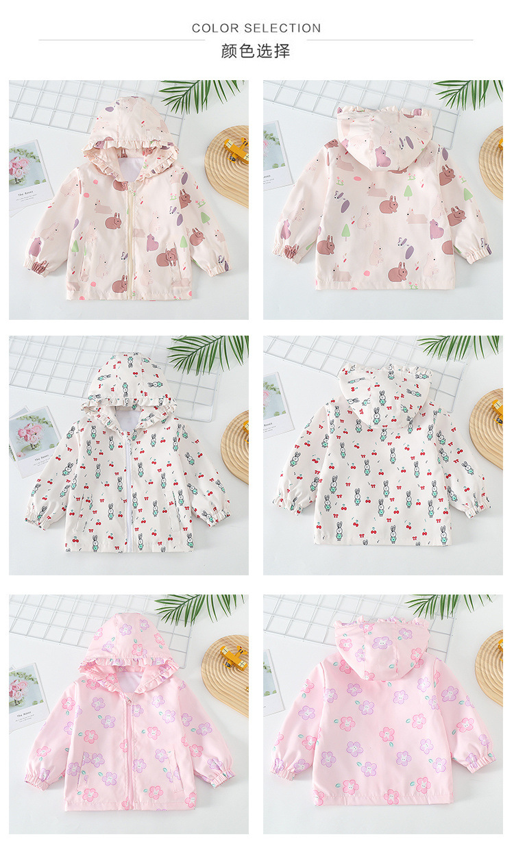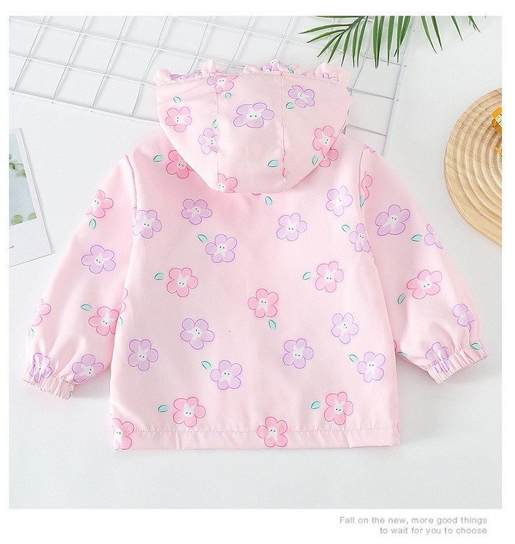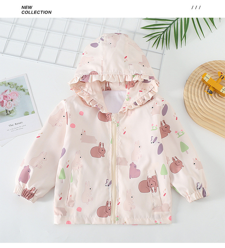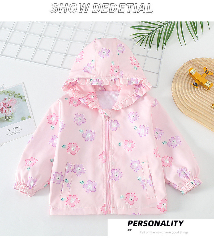 2024 새로운 여자 재킷 봄과 가을 어린이 재킷 탑 어린 소녀 후드 방풍 스타일 봄 재킷