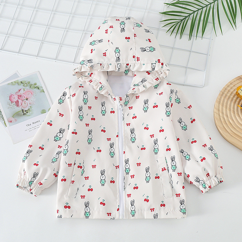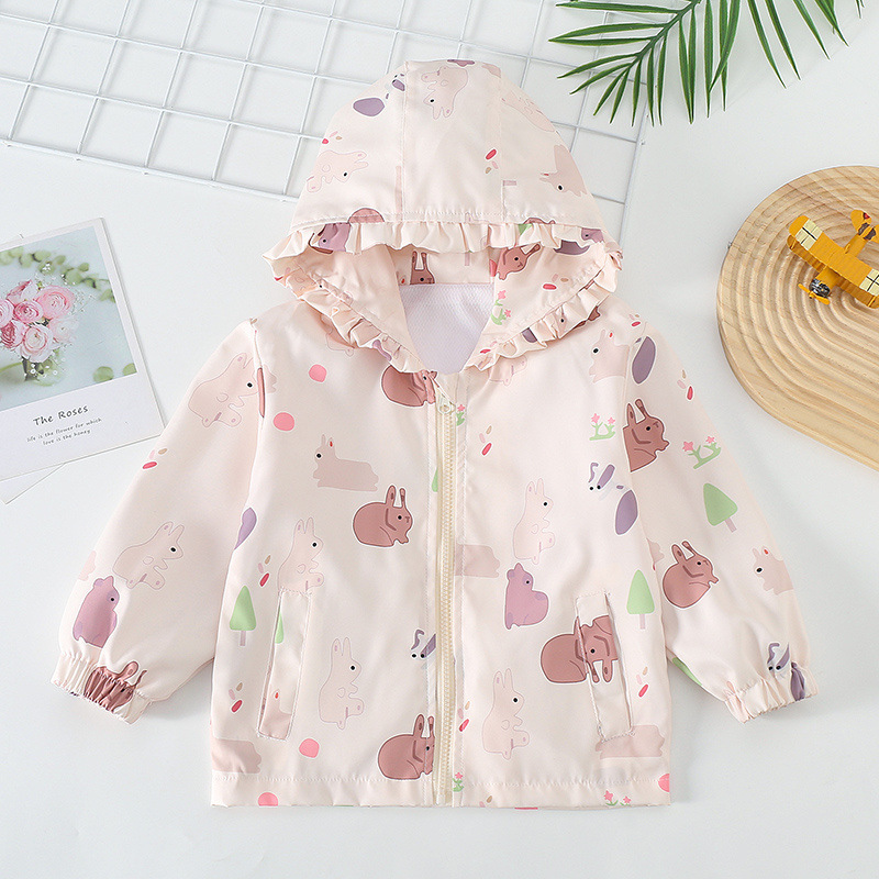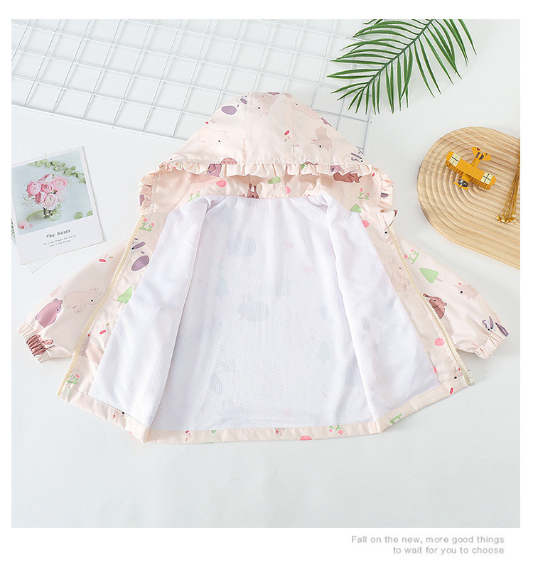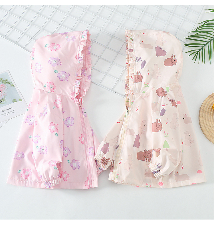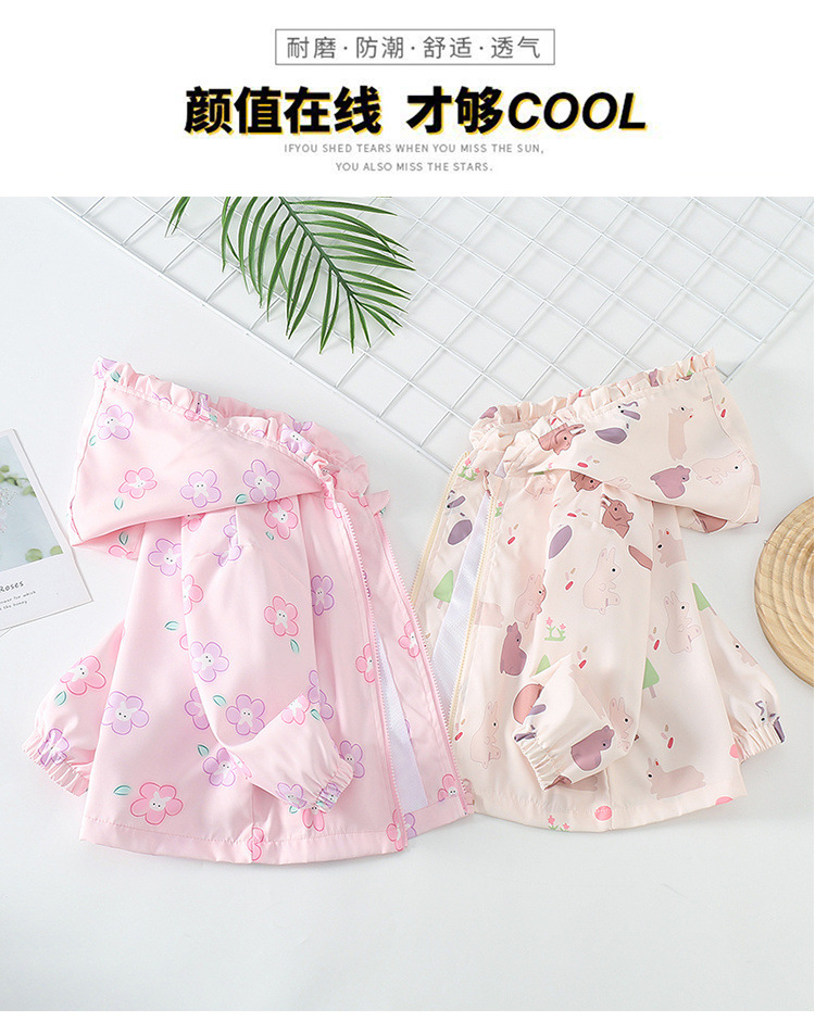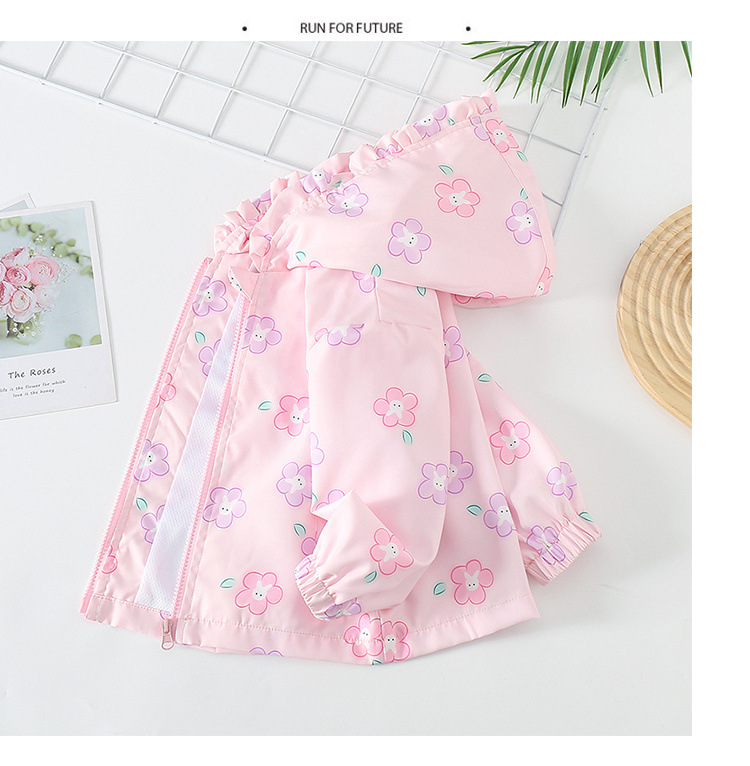 2024 새로운 여자 재킷 봄과 가을 어린이 재킷 탑 어린 소녀 후드 방풍 스타일 봄 재킷
