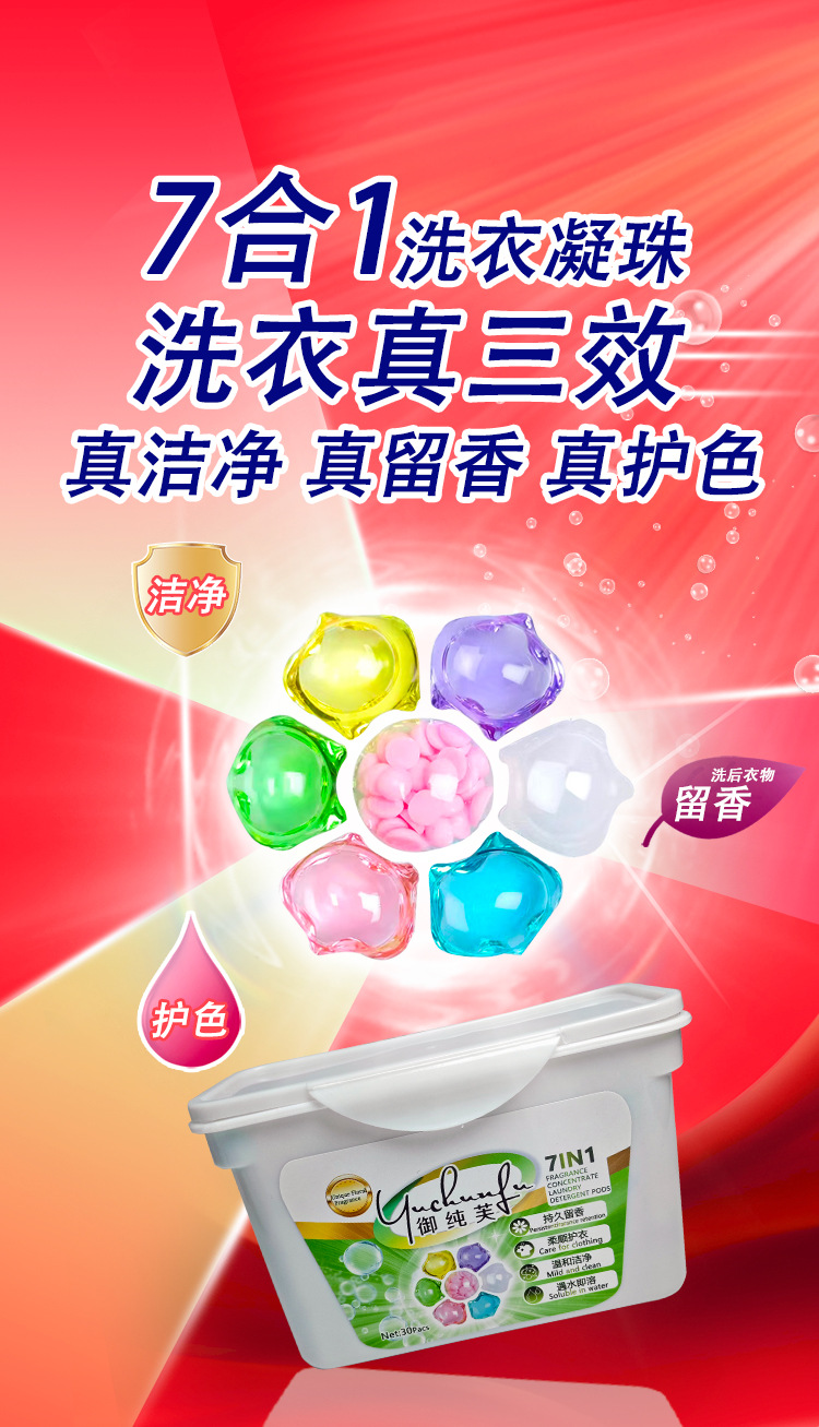 Yuchunfu 농축 7 챔버 세탁 비즈는 청소, 오염 제거 및 향기 유지를 제공합니다. 국경 간 영어 버전 7-in-1 세탁 비즈 제조업체스토어 가기
