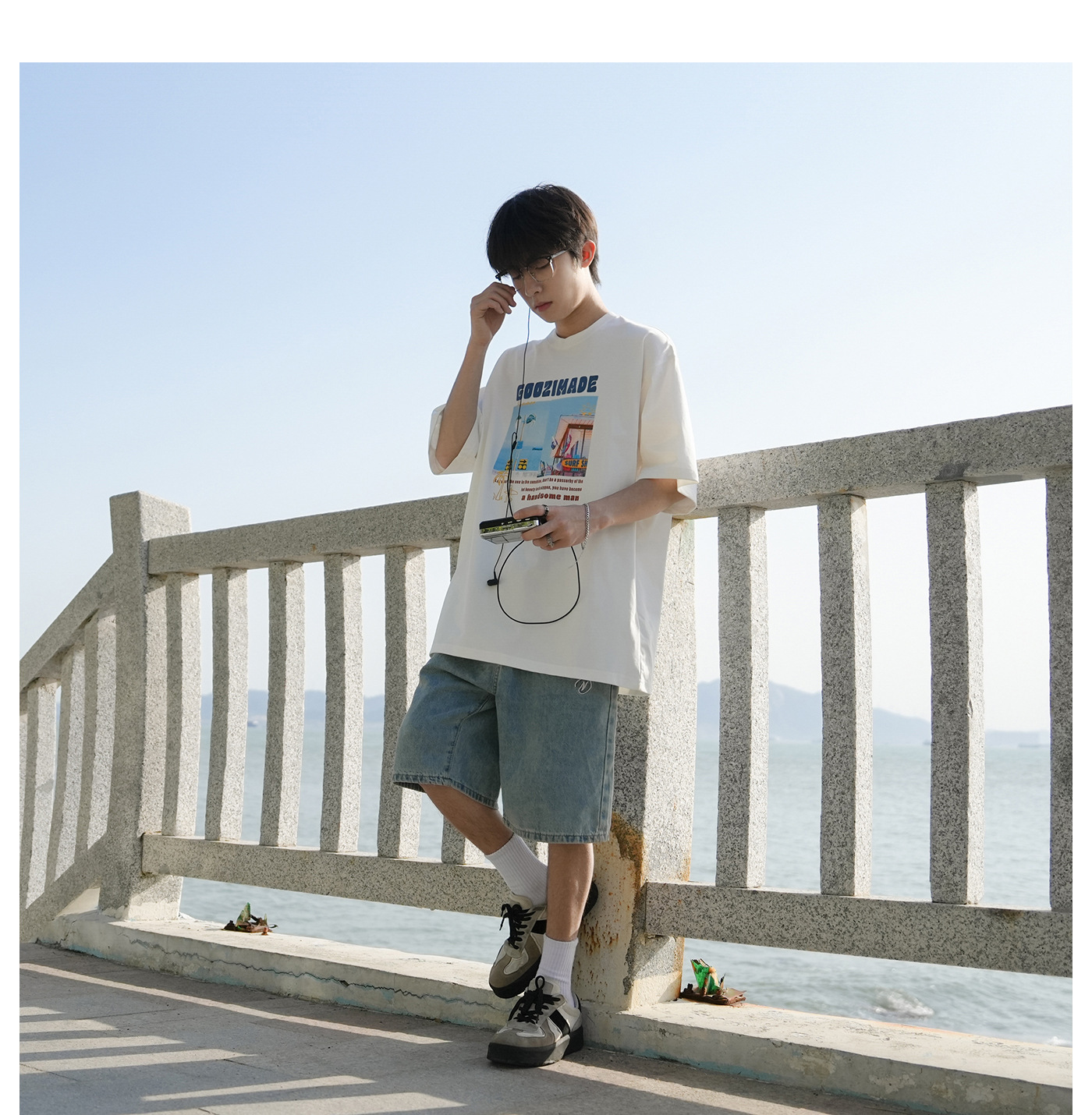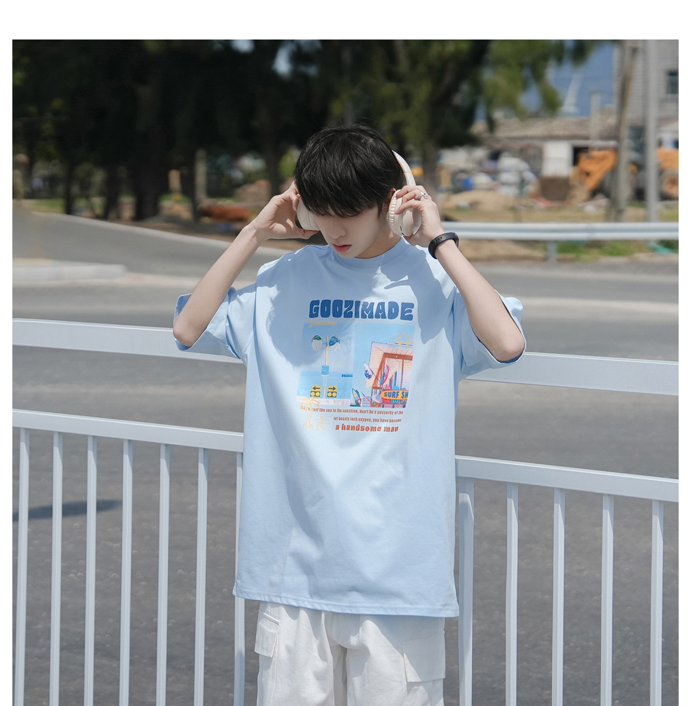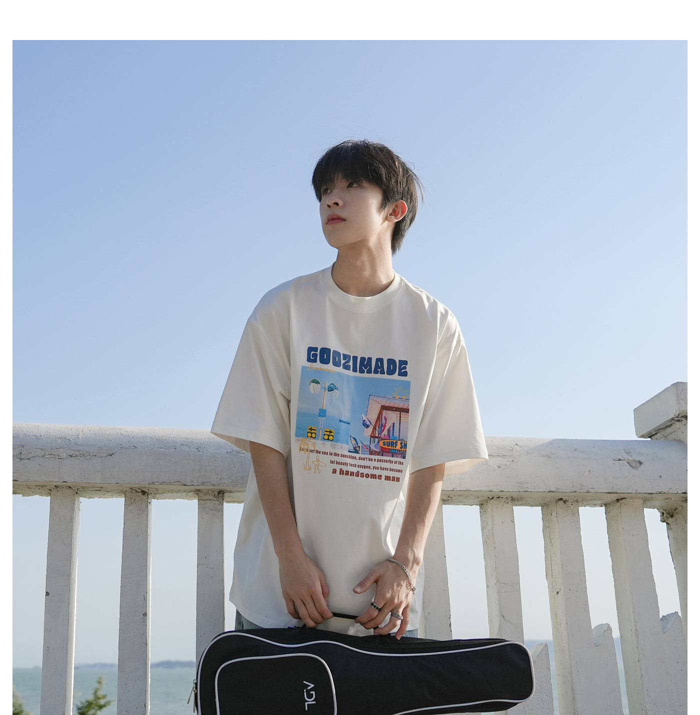 공장 직접 공급 220g 헤비급 Solona 반팔 티셔츠 남성 여름 휴가 바람 인쇄 시원한 느낌 반소매 티셔츠스토어 가기