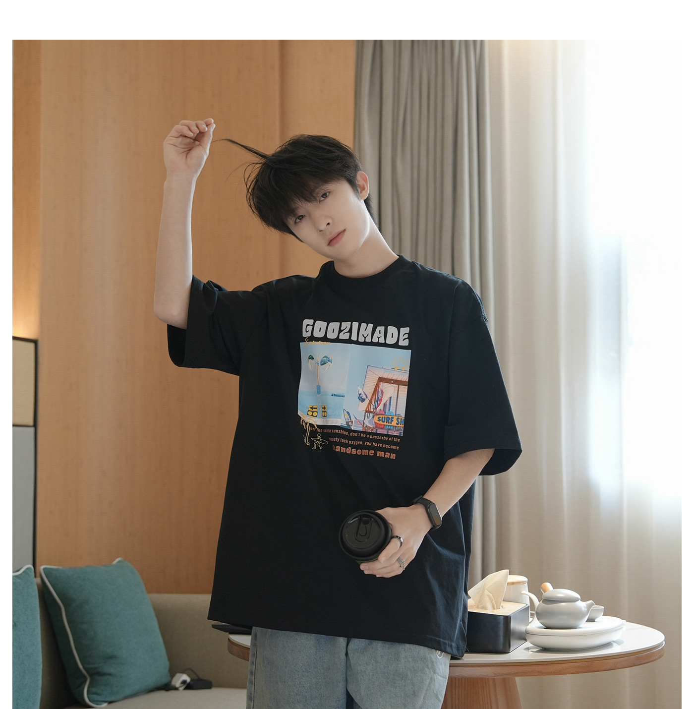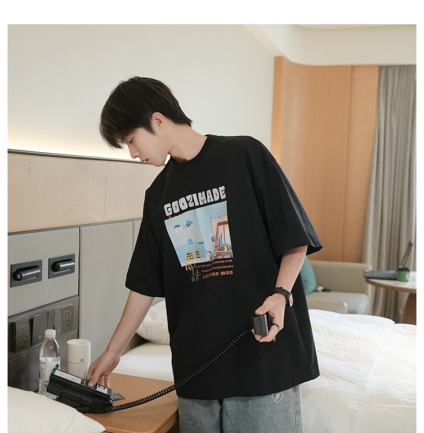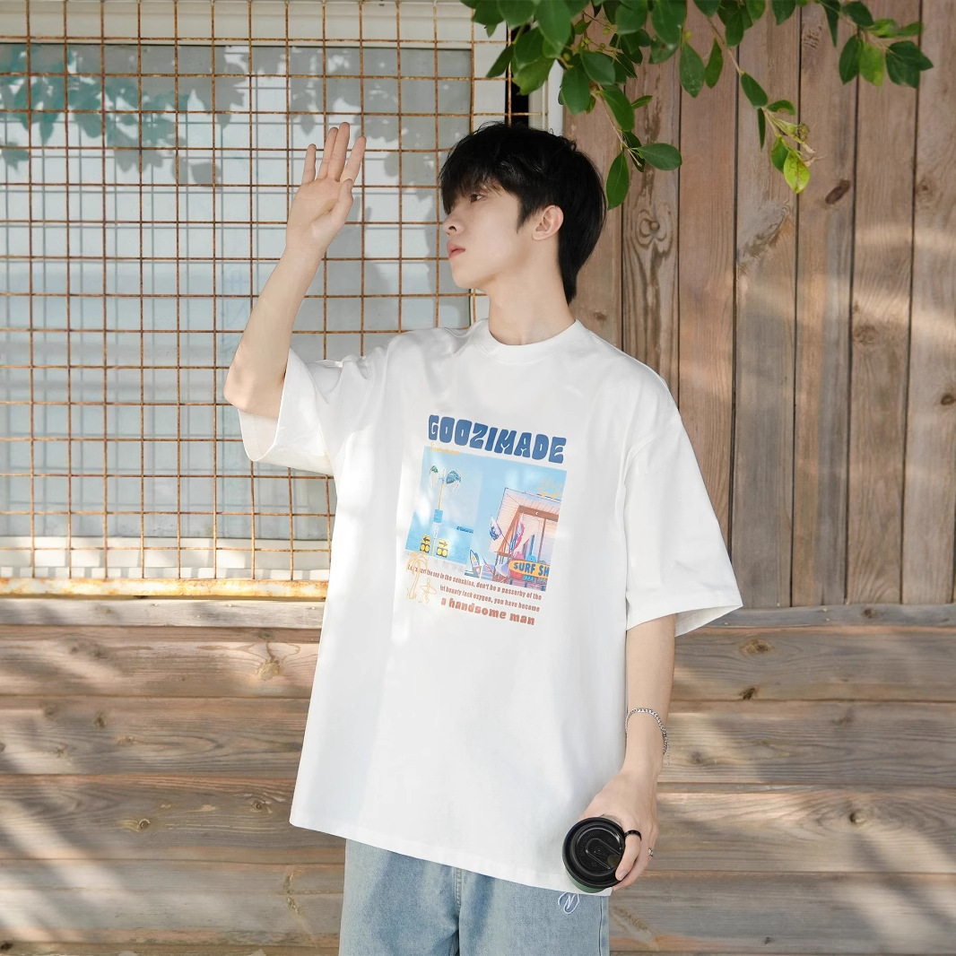 공장 직접 공급 220g 헤비급 Solona 반팔 티셔츠 남성 여름 휴가 바람 인쇄 시원한 느낌 반소매 티셔츠스토어 가기