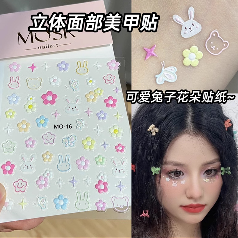 3 차원 구호 튤립 꽃을 그린 도파민 컬러 꽃 스티커 어린이 스티커 얼굴 액세서리 네일 스티커