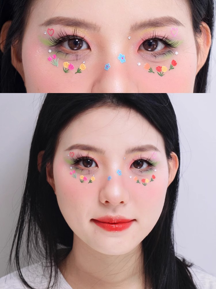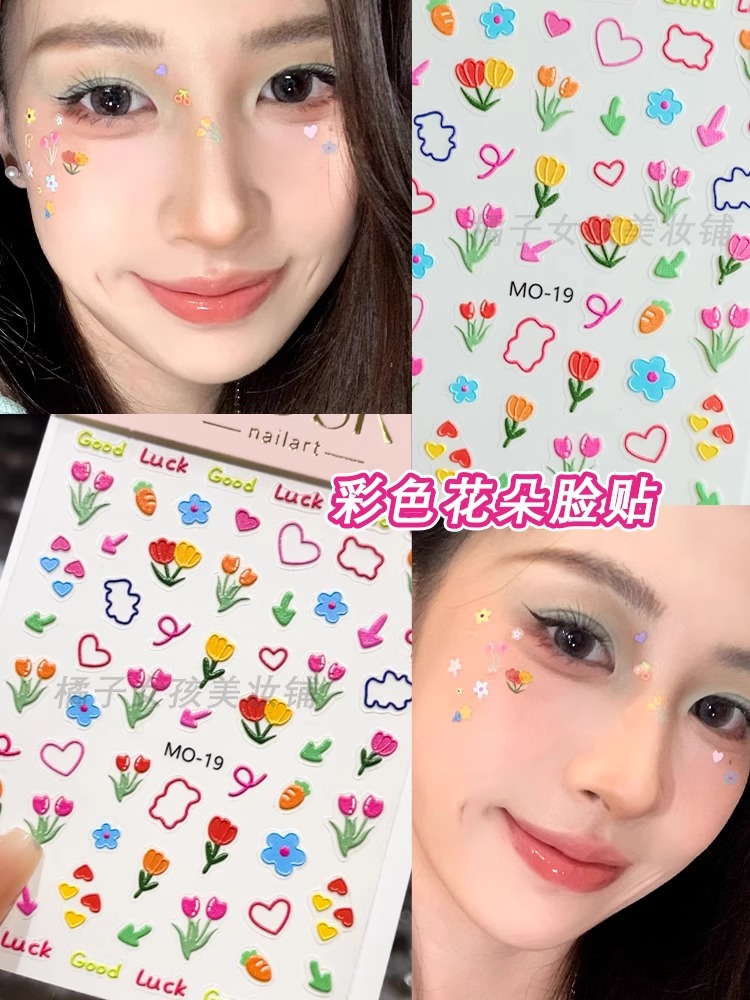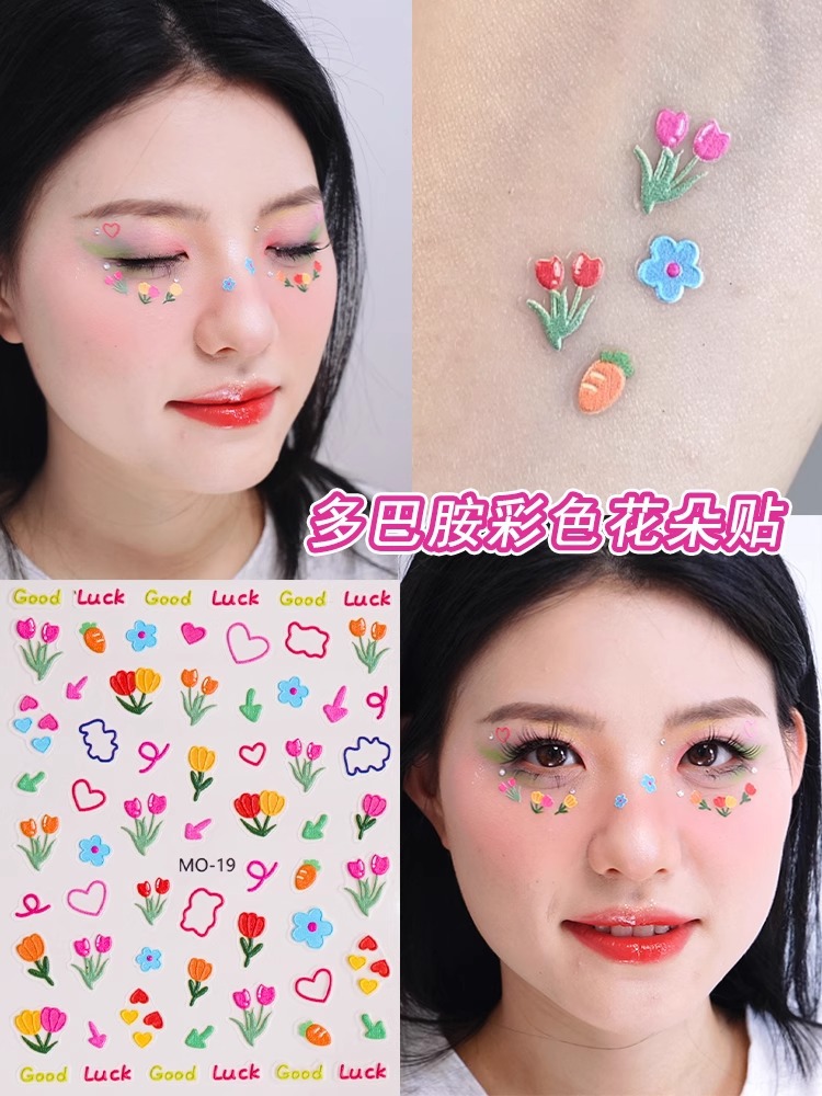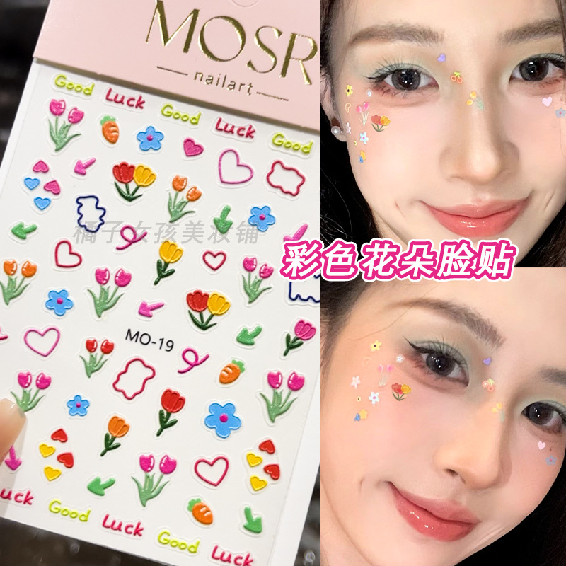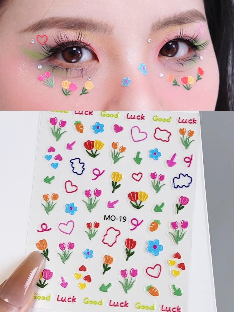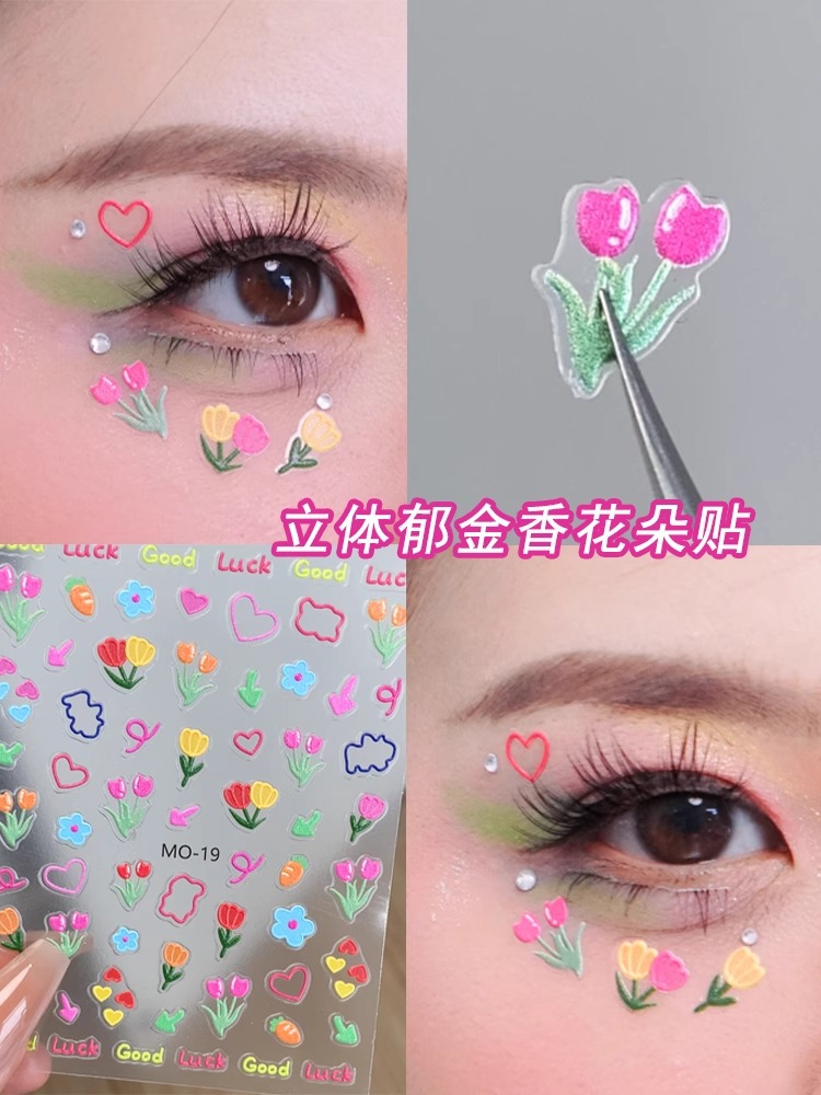 3 차원 구호 튤립 꽃을 그린 도파민 컬러 꽃 스티커 어린이 스티커 얼굴 액세서리 네일 스티커스토어 가기